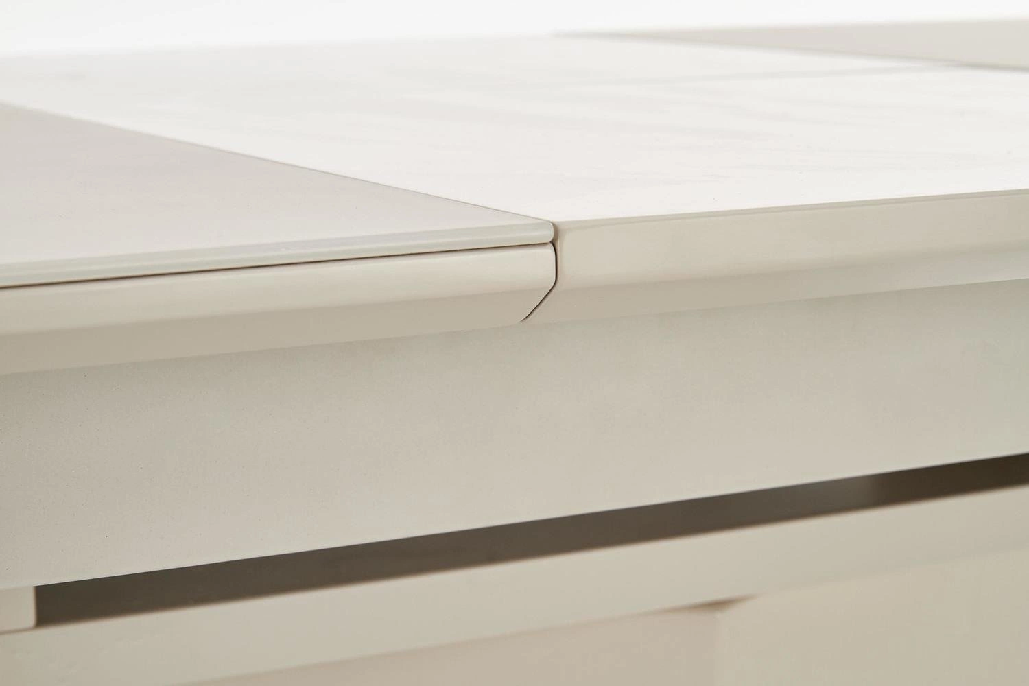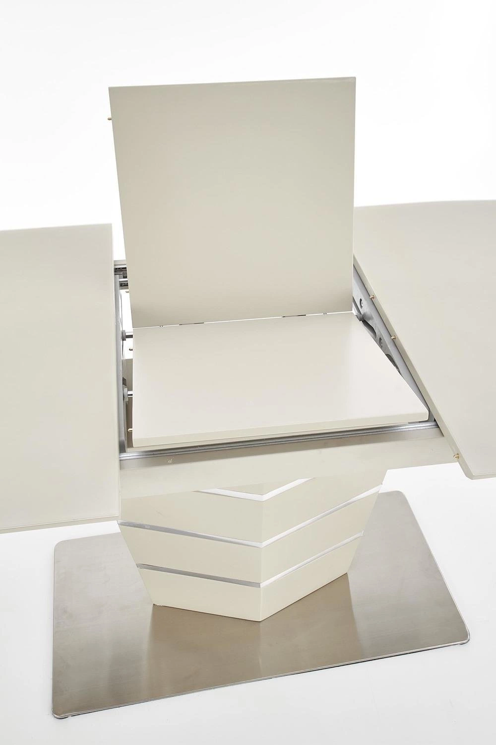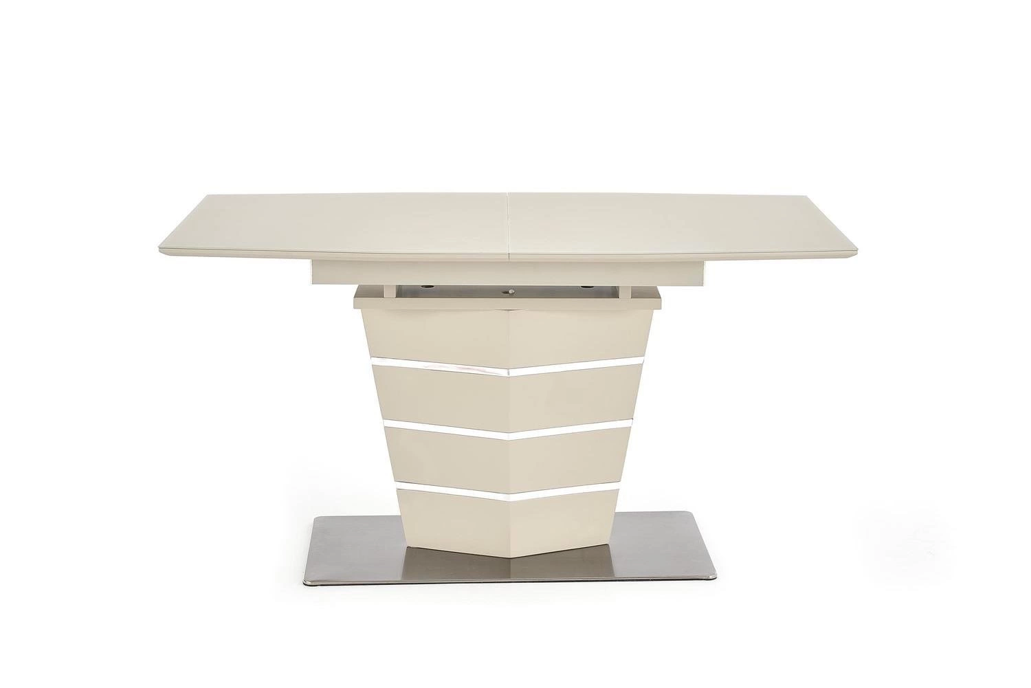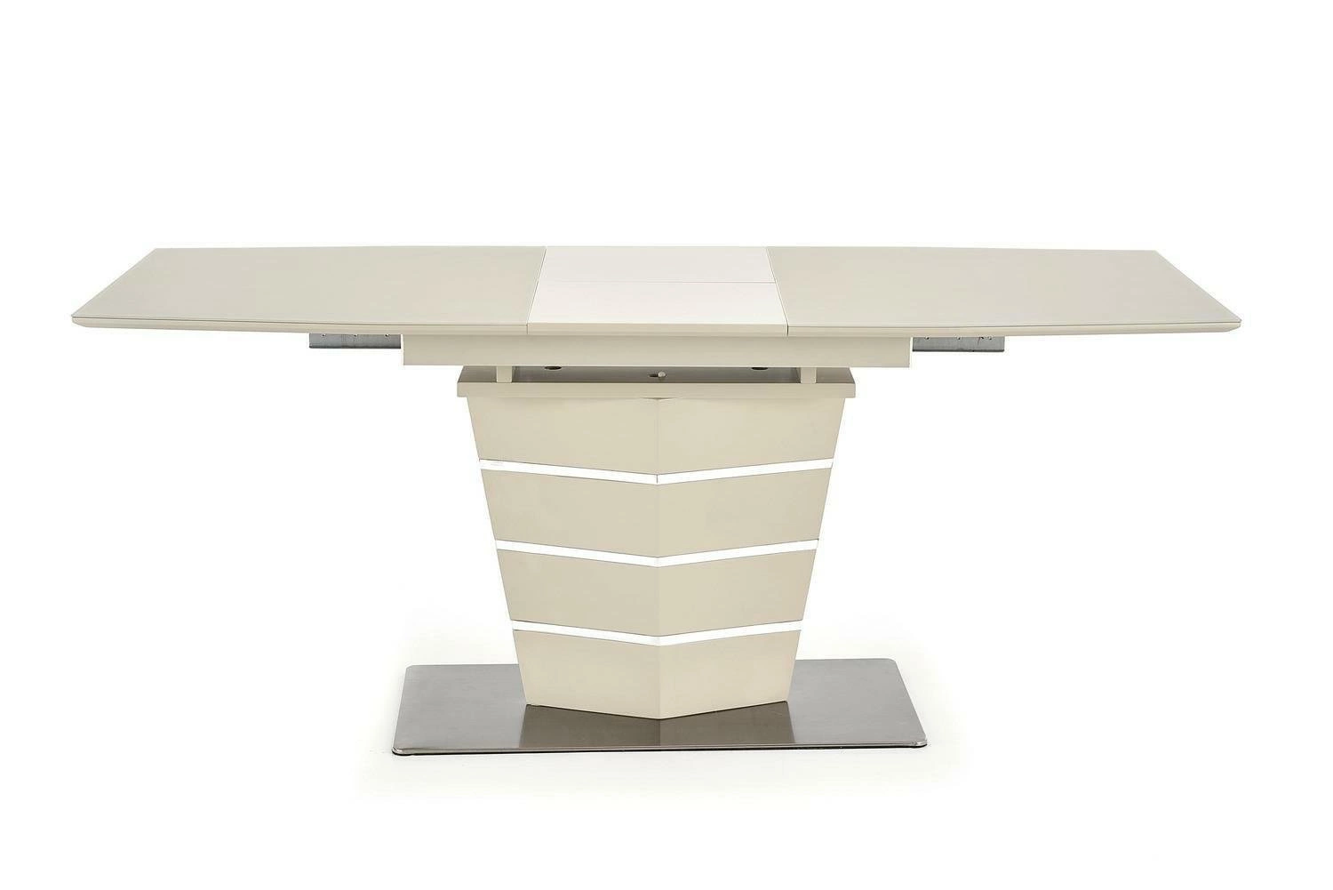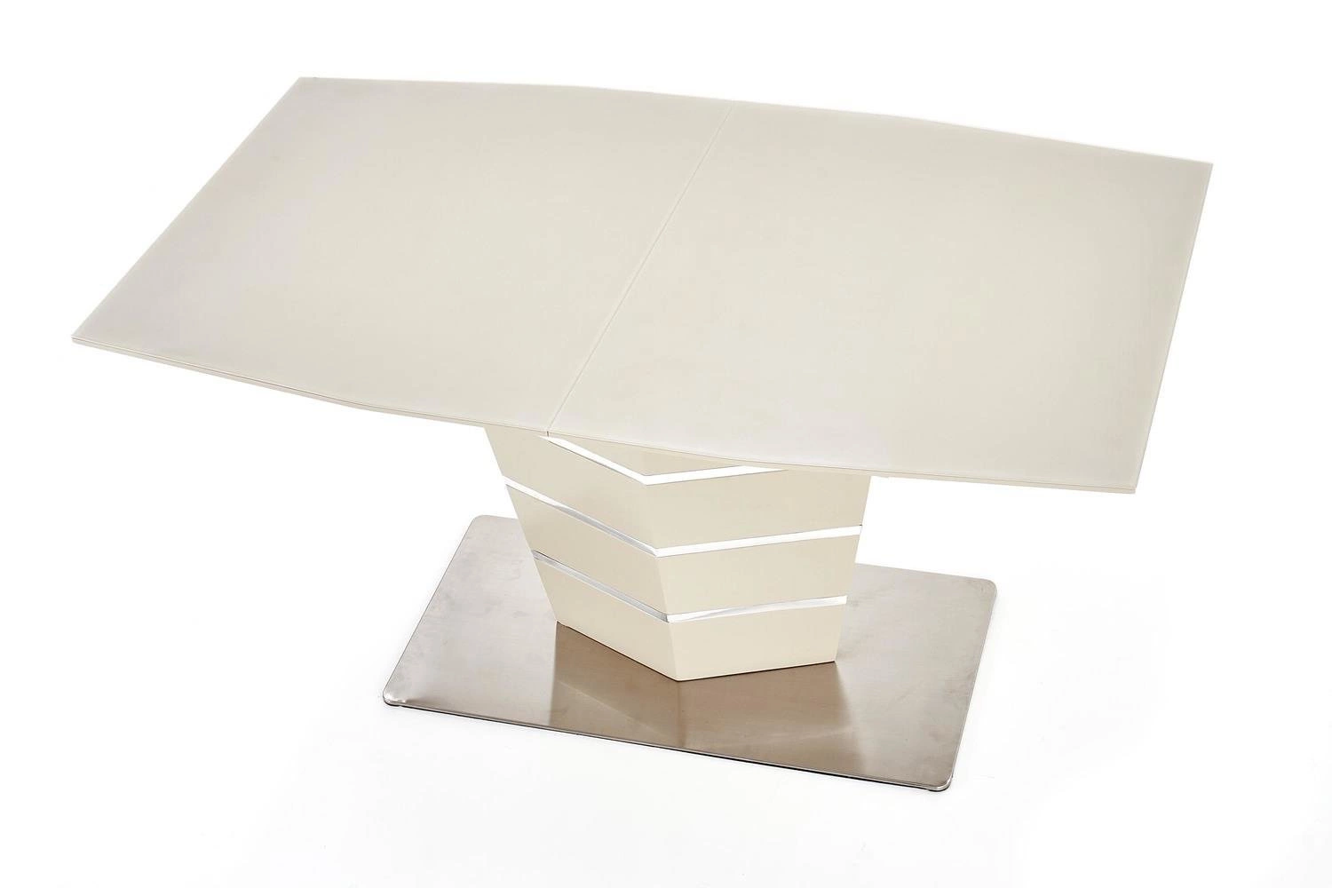 Rozkládací jídelní stůl Retos béžový matný se skleněnou deskou moderní na jedné noze 140-180 cm