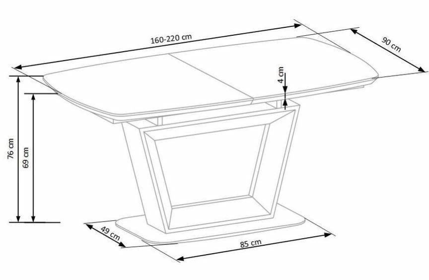 Obdélníková deska s hloubkou 90 cm zajišťuje dostatek místa pro servírování jídel i pohodlné rozmístění židlí. Materiál desky je nenáročný na údržbu, takže stůl snadno udržíte v čistotě i po každém jídle. Stabilní kovová podnož poskytuje jistotu používání i při maximálním rozložení, přičemž samotný mechanismus rozkládání je intuitivní a snadný na ovládání.