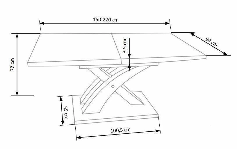 Odvážný styl se skládacím stolem Doran. Tento moderní stůl má výraznou skleněnou desku a pevné nohy z nerezové oceli pro větší stabilitu. Rozměry jsou 160-220 cm (délka), 90 cm (šířka )a 78 cm (výška).
