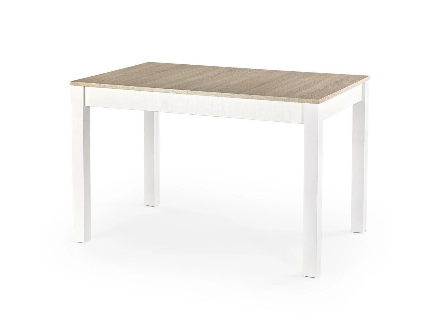 Rocco je ideální pro ty, kdo oceňují funkčnost a estetiku. Minimalistický tvar a světlé barvy – přírodní dub sonoma a bílá – vizuálně zvětšují prostor a skvěle ladí jak se světlými, tak i kontrastními doplňky. Polomatná povrchová úprava desky dodává stolu decentní, elegantní vzhled, který vyniká při každodenním používání i při výjimečných příležitostech.