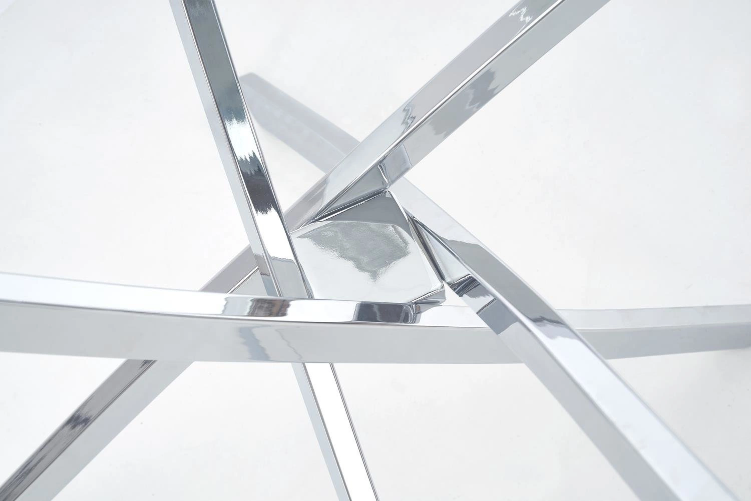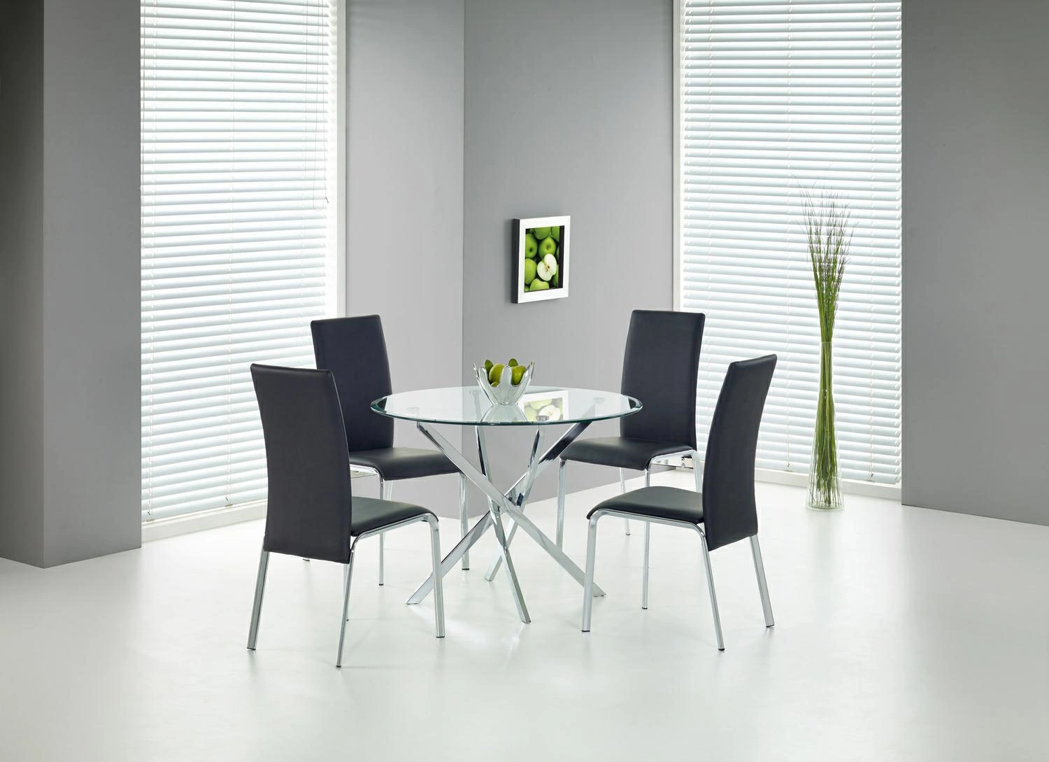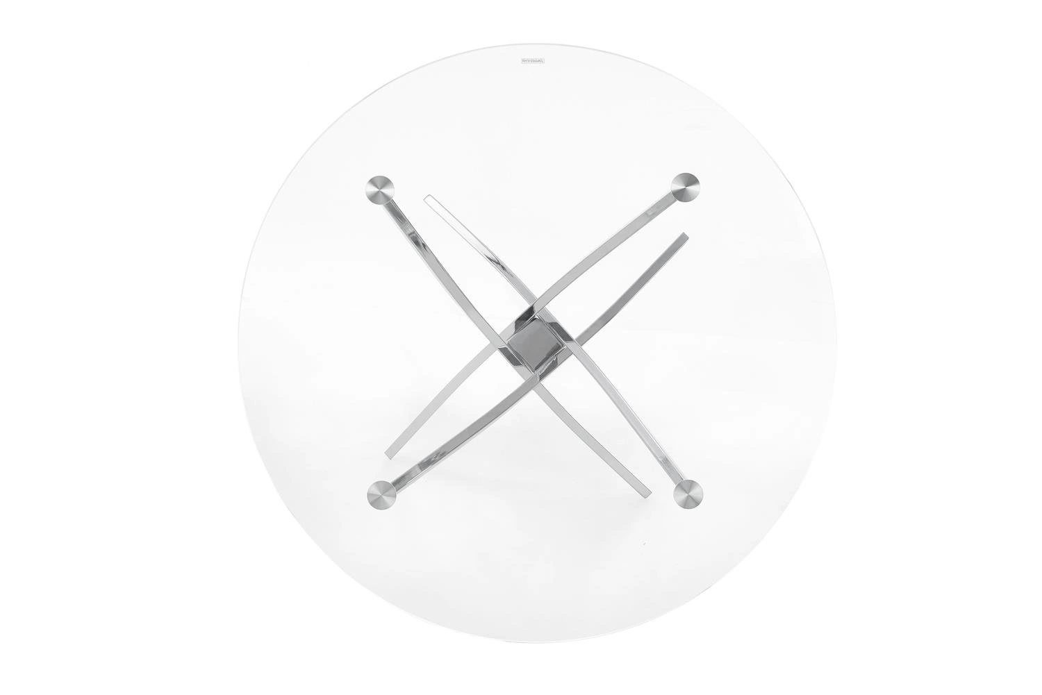 Kulatý skleněný stůl Amber od značky Intesi je ideální volbou pro milovníky moderních a elegantních interiérů. Kulatá deska o průměru 100 cm z čirého skla a čtyři kovové nohy s chromovanou povrchovou úpravou vytvářejí lehký, ale výrazný prvek do jídelny nebo kuchyně. Tento nerozkládací stůl spojuje minimalistický design s funkčností a poskytuje pohodlné místo až pro čtyři osoby.