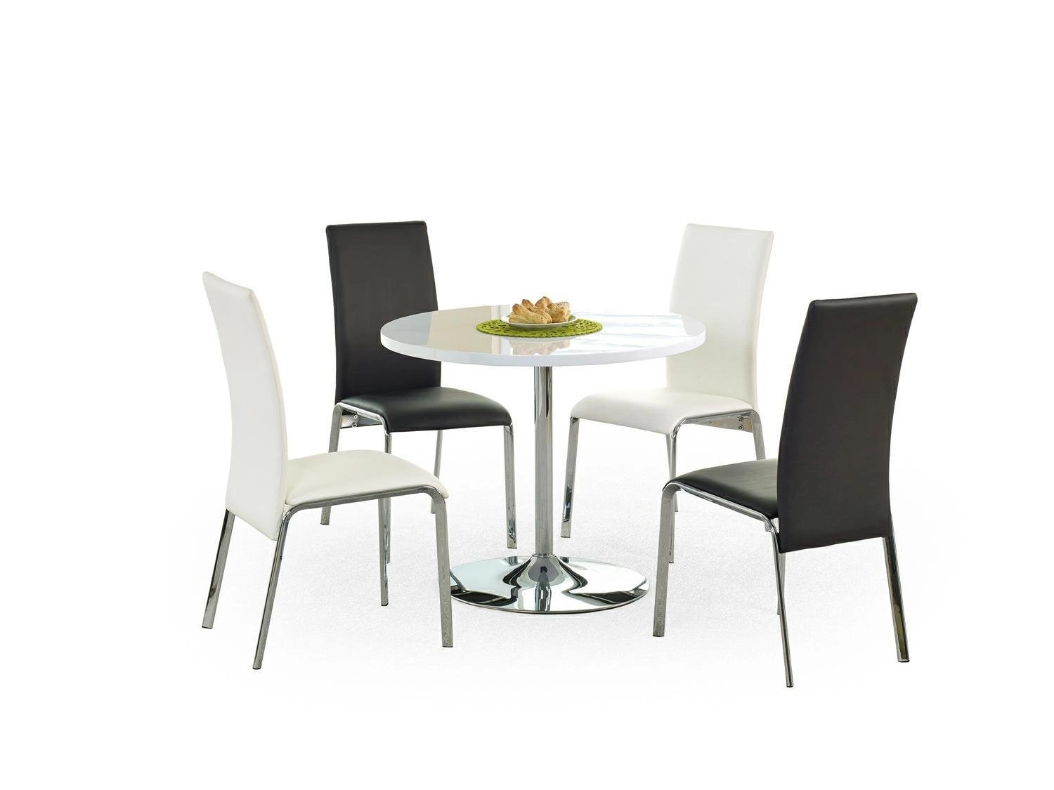 Kulatý jídelní stůl Izab od značky Intesi spojuje eleganci glamour stylu s funkčností moderního designu. Kulatá deska o průměru 90 cm v klasické bílé barvě je podepřena jedinou výraznou nohou s chromovaným leskem. Tento originální kus nábytku, navržený speciálně do jídelny, nabízí pohodlí při každodenním stolování i posezení s blízkými.