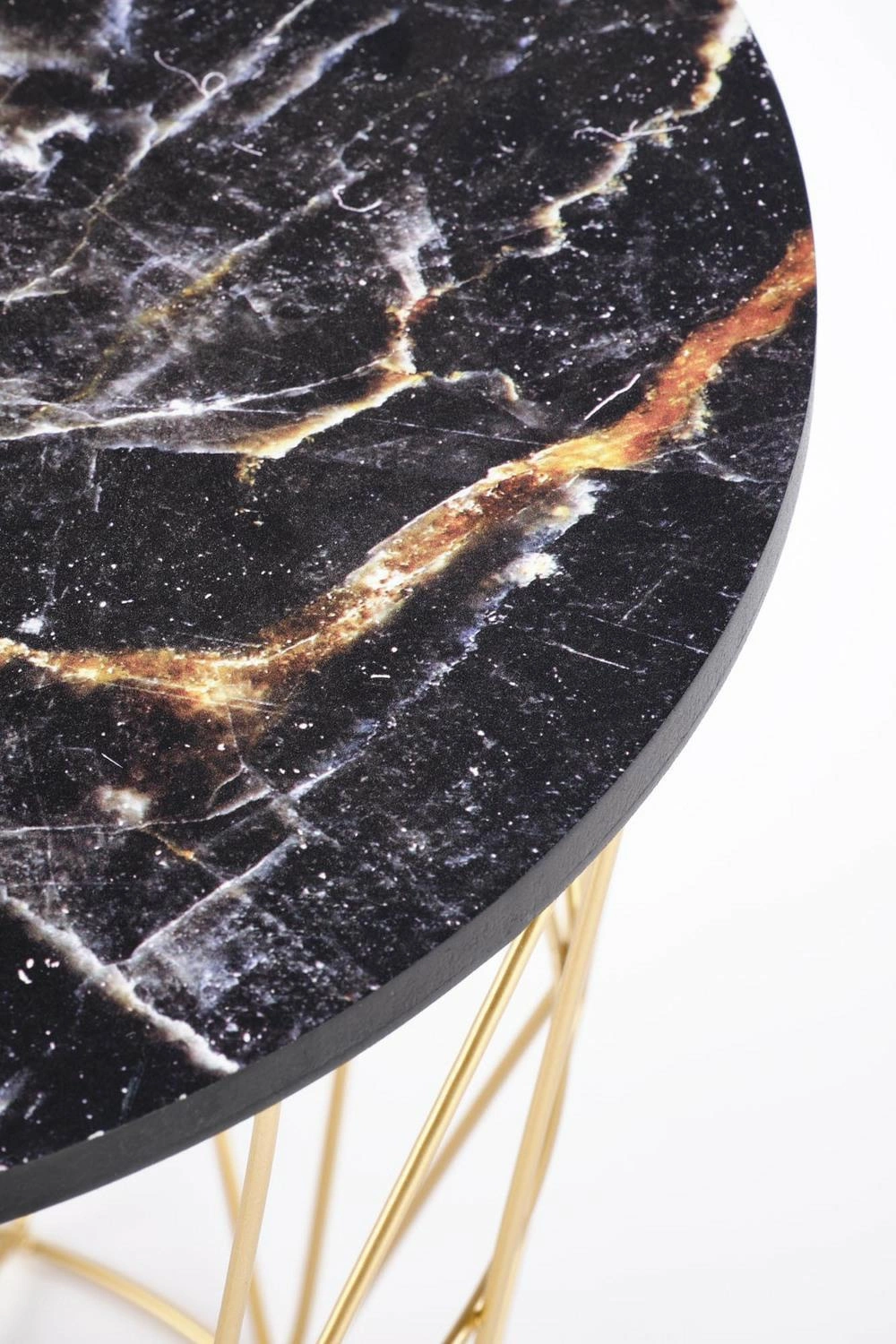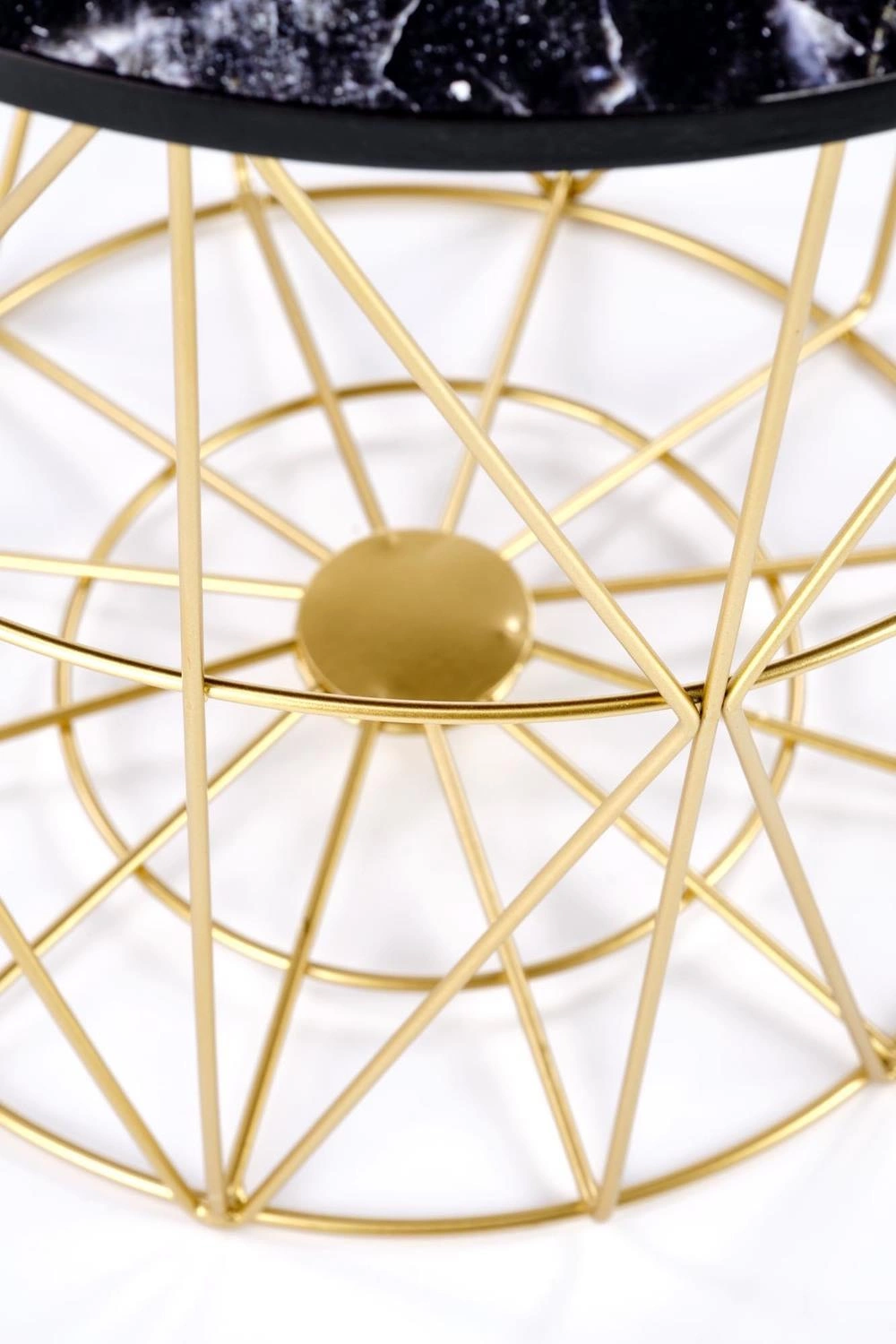 Kulatý konferenční stolek Rissa byl navržen pro ty, kdo oceňují originální a zároveň praktická řešení. Deska z laminované MDF desky věrně imituje luxusní černý mramor, což dává nábytku exkluzivní vzhled, přitom je snadná na údržbu a odolná proti každodennímu používání. Zlatá ocelová podstava zajišťuje stabilitu a výrazný barevný kontrast, který upoutá pozornost. Kulatý tvar je nejen nadčasový, ale i bezpečný a pohodlný při používání – absence ostrých hran činí stolek ideální volbou do rodinných prostor.Funkčnost – praktický úložný prostor a univerzálnost