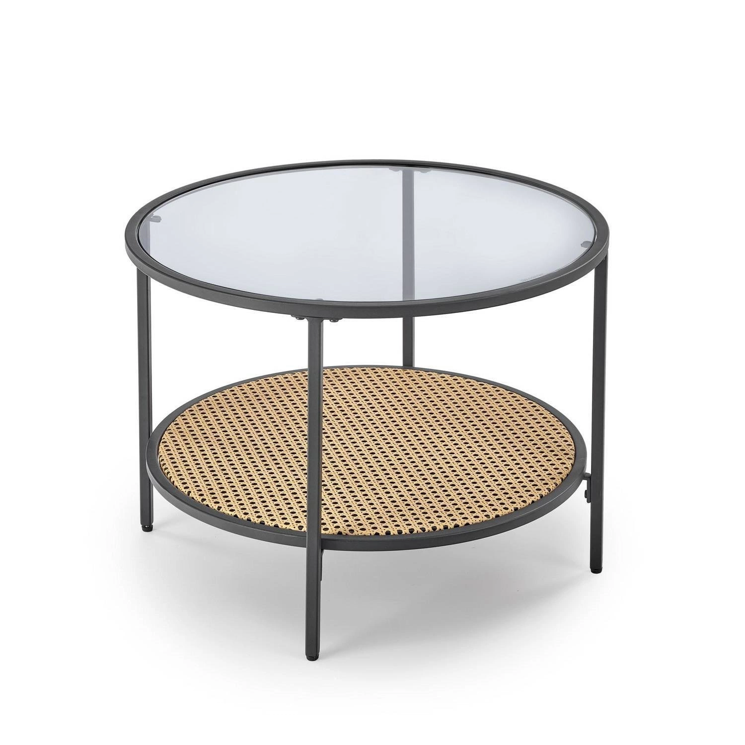 Kulatý konferenční stolek Bahama zaujme jednoduchostí tvaru a promyšlenou kombinací materiálů. Deska o průměru 60 cm je vyrobena z odolného tvrzeného skla – nejenže působí efektivně, ale je i snadná na údržbu. Kouřové sklo dodává celku eleganci a lehkost, zatímco černá kovová konstrukce zaručuje stabilitu i při maximálním zatížení do 30 kg. Prvky z technoratanu v přírodním odstínu vnášejí do interiéru teplou a jemně loftovou atmosféru, díky čemuž je stolek Bahama skvělou volbou do moderních i tradičnějších prostor.Praktičnost každý den – ideální stolek do obýváku i nejen tam