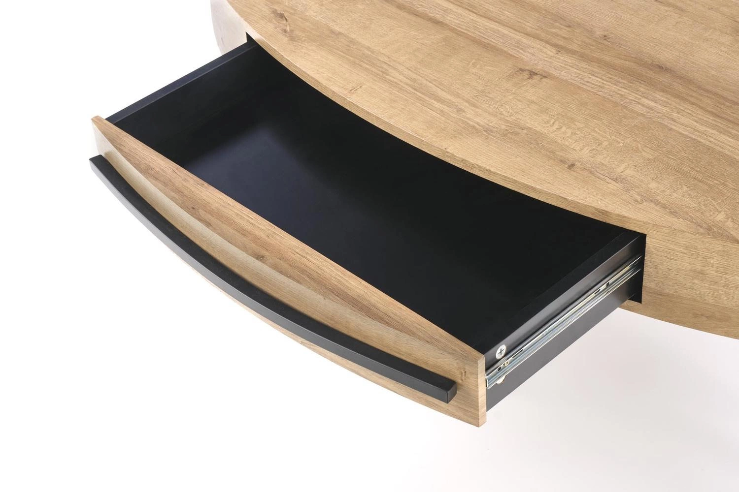 Oválný konferenční stolek Paola v loftovém stylu, dub zlatý se zásuvkou do obývacího pokoje 120x60 cm Intesi