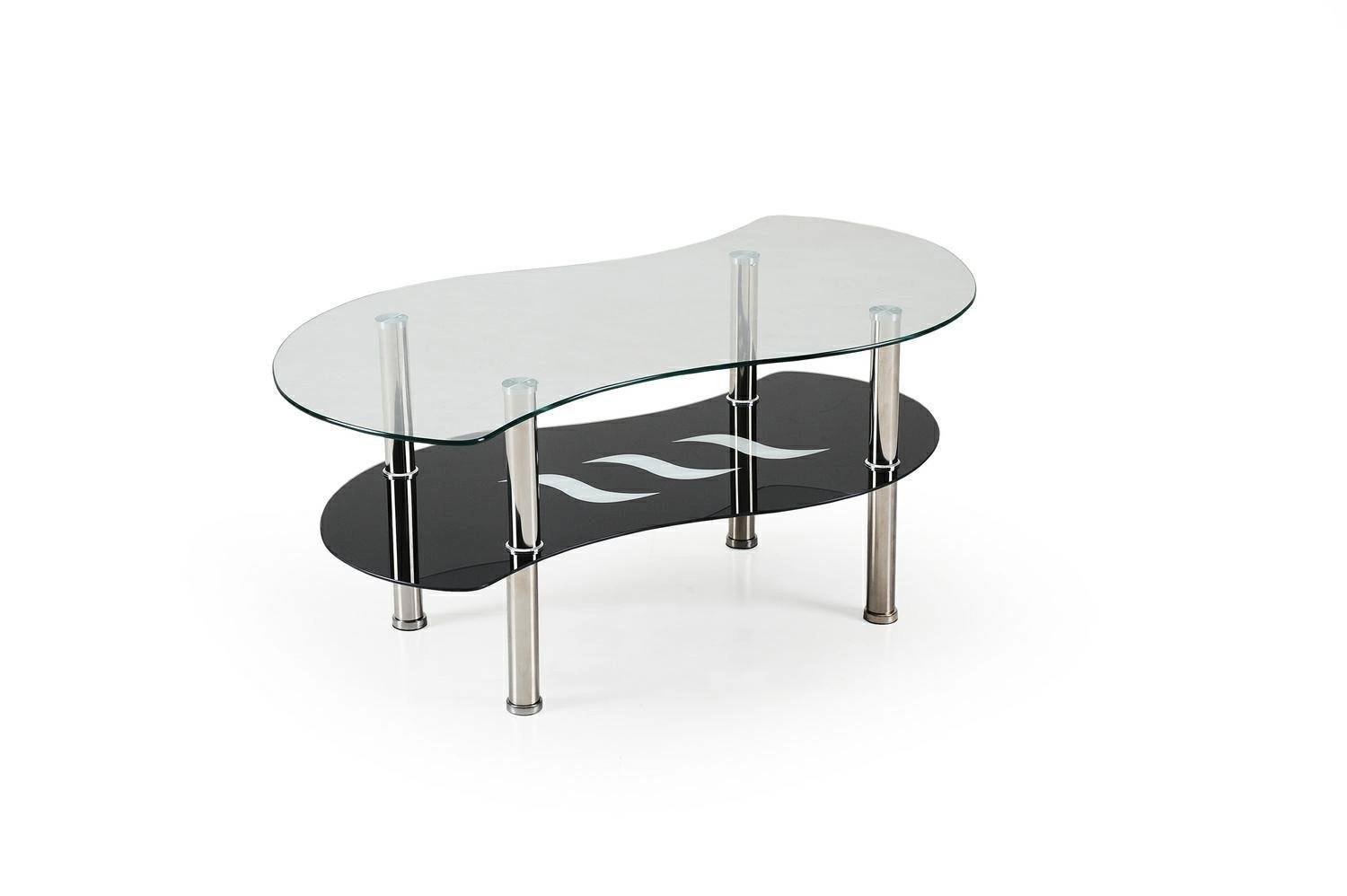 Horní část ve tvaru oválu je vyrobena z průhledného skla, které dodává lehkost a prostor. Rám je vyroben z kovu a má chromovou povrchovou úpravu pro stabilitu a odolnost. Spodní police poskytuje další úložný prostor pro knihy, noviny nebo dekorace. Konferenční stolek se velmi snadno čistí, takže pro něj nebude problém každodenní údržba.