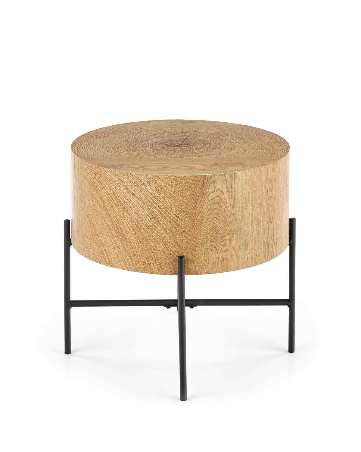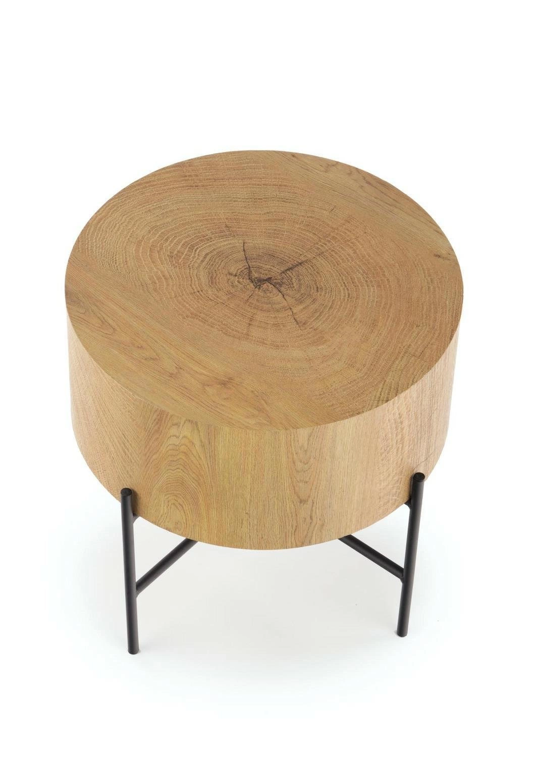 Kulatý konferenční stolek Woodsten S dub loft do obýváku, dřevěná deska, černá konstrukce 45 cm