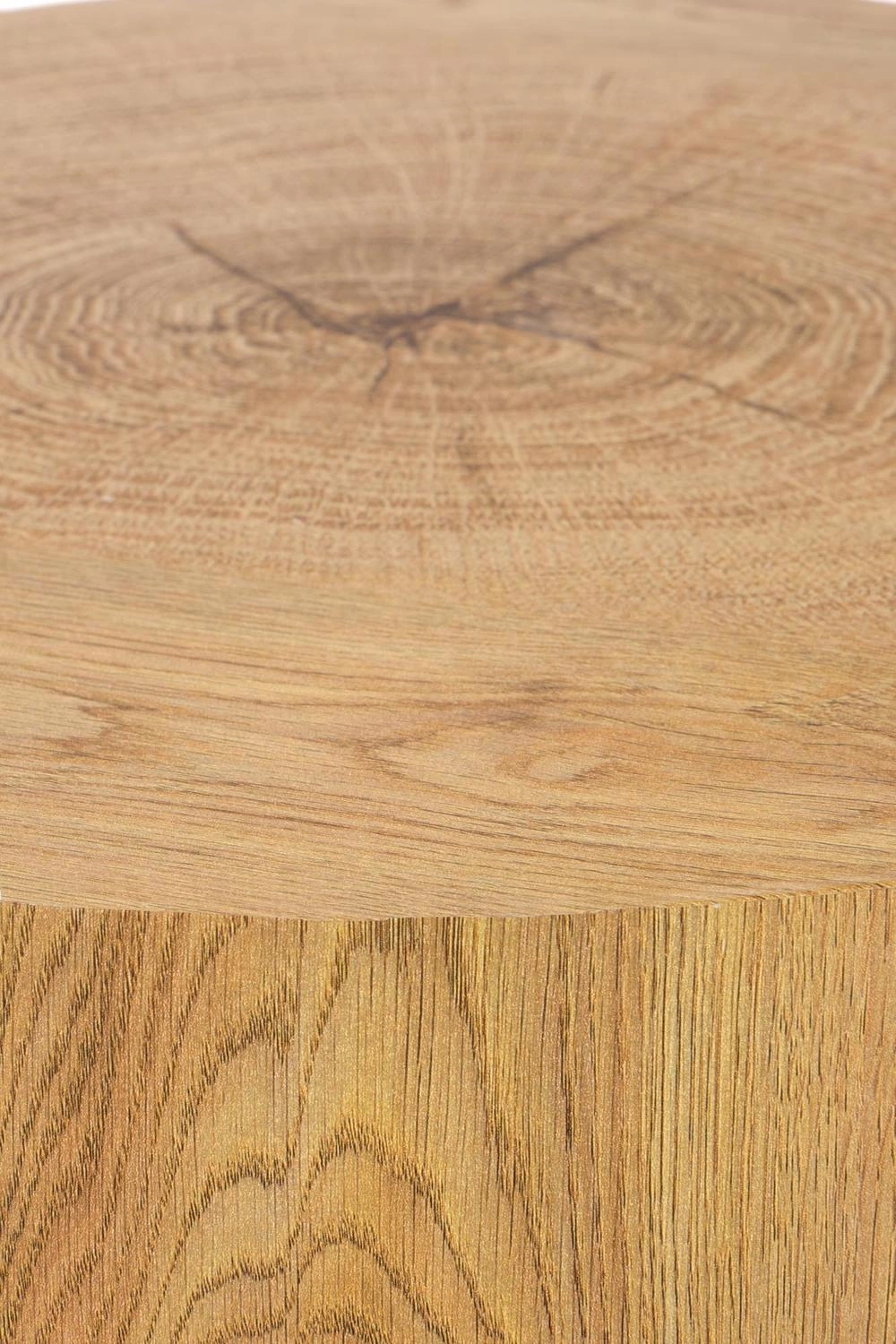 Jedinečný charakter tohoto moderního konferenčního stolku zdůrazňuje propojení přírodní barvy dřeva s industriálním vzhledem kovové podnože. Díky tomu se Woodsten S perfektně hodí do loftových, industriálních, skandinávských i minimalistických aranžmá. Kulatý tvar desky umožňuje volné umístění stolku kdekoliv v obývacím pokoji, a absence ostrých hran zvyšuje bezpečnost používání – ideální volba do domácností s malými dětmi nebo domácími mazlíčky.