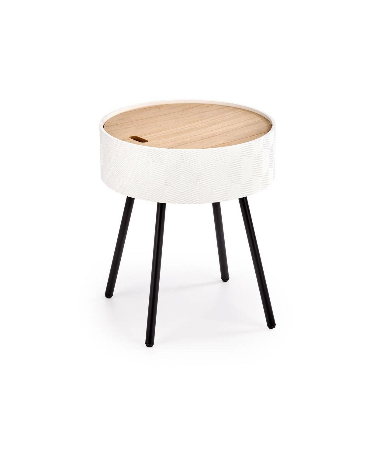 Kulatý bílý skandinávský konferenční stolek s úložným prostorem do obýváku 38 cm