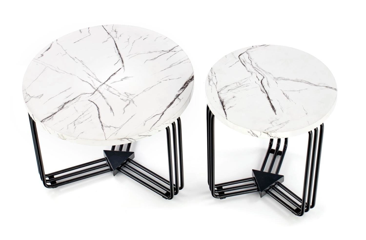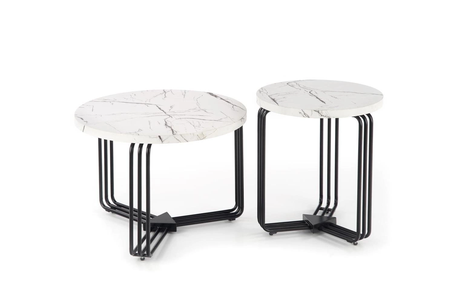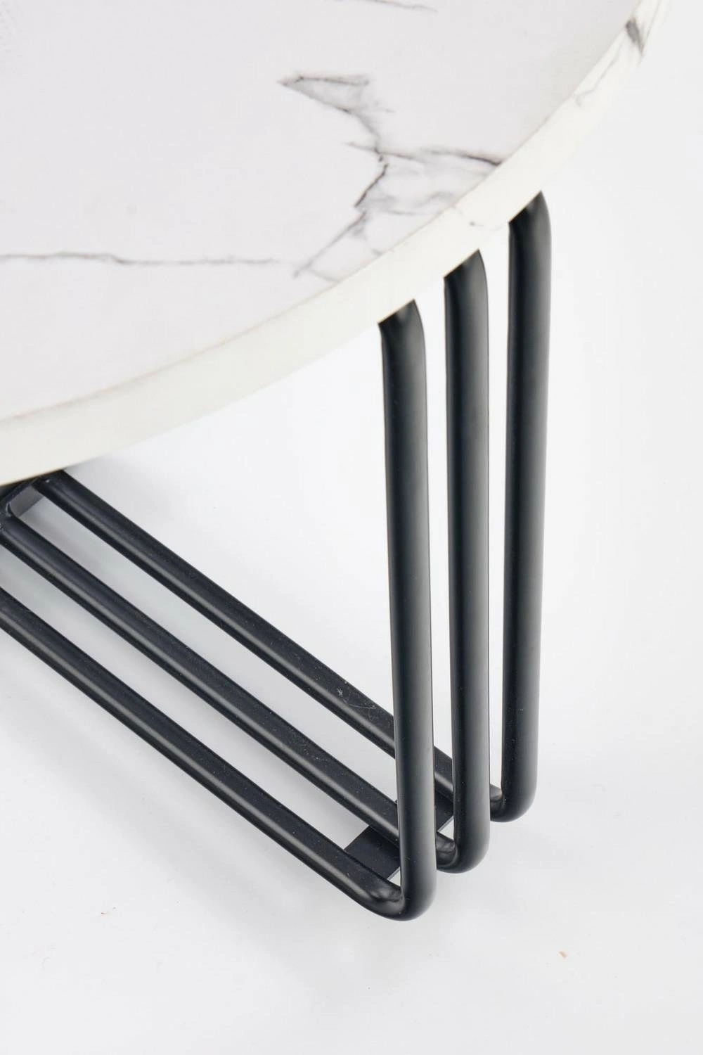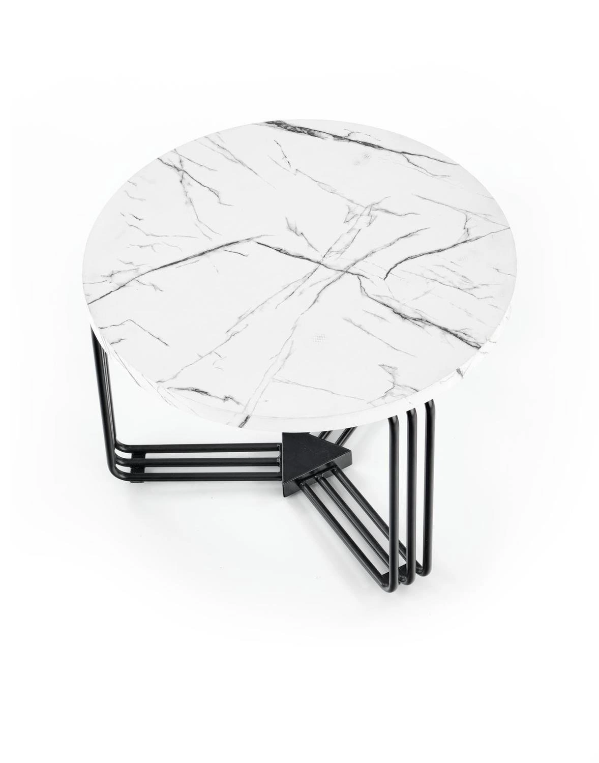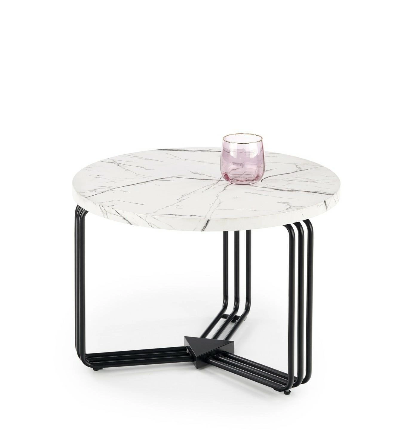Konferenční stolek Lintica od Intesi spojuje nadčasovou eleganci s funkčností, díky čemuž oživí každý interiér. Kulatá deska o průměru 55 cm z laminované MDF desky v dekoru bílého mramoru upoutá pozornost jemným a luxusním vzhledem. Stabilní černá podnož z oceli dodává stolku industriální nádech a zajišťuje bezpečné používání. Díky výšce 41 cm je tento moderní konferenční stolek ideální jako středobod vašeho obýváku, ložnice nebo předsíně – skvěle se hodí jak do glamour, tak loftových interiérů.Seznamte se blíže s kulatým konferenčním stolkem Lintica