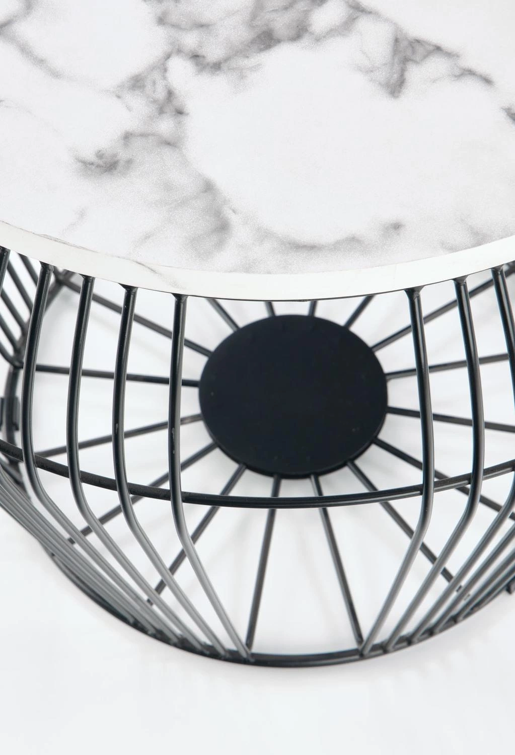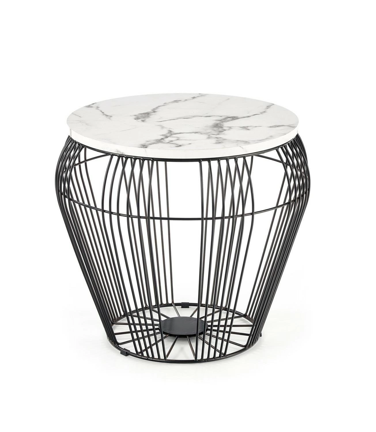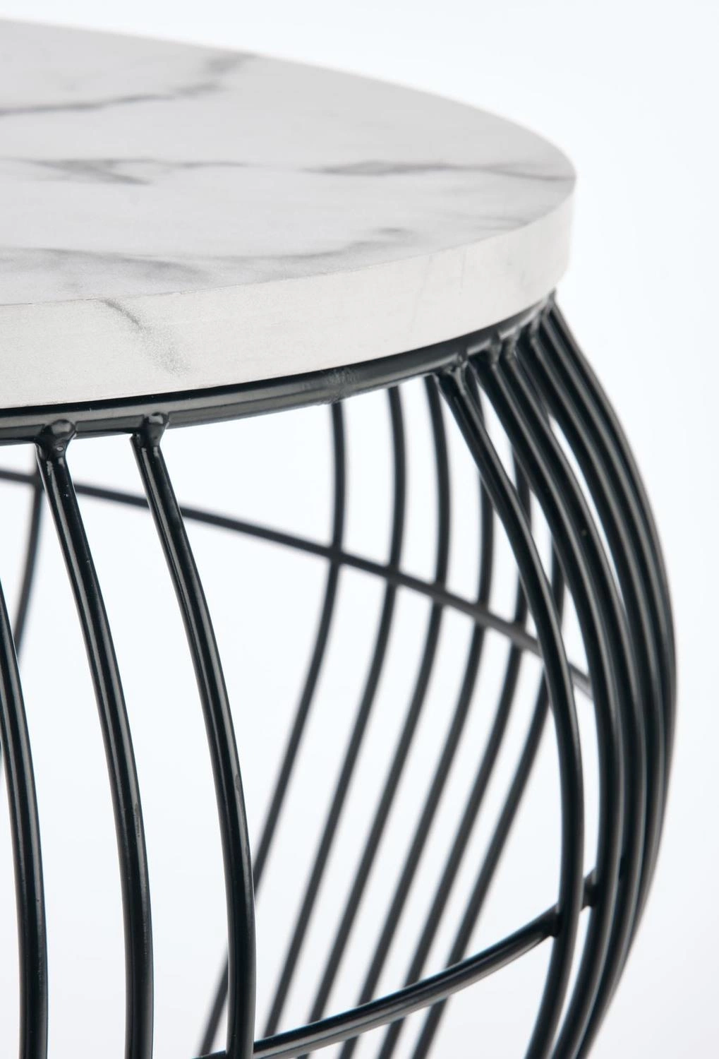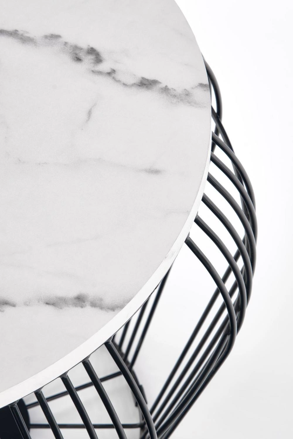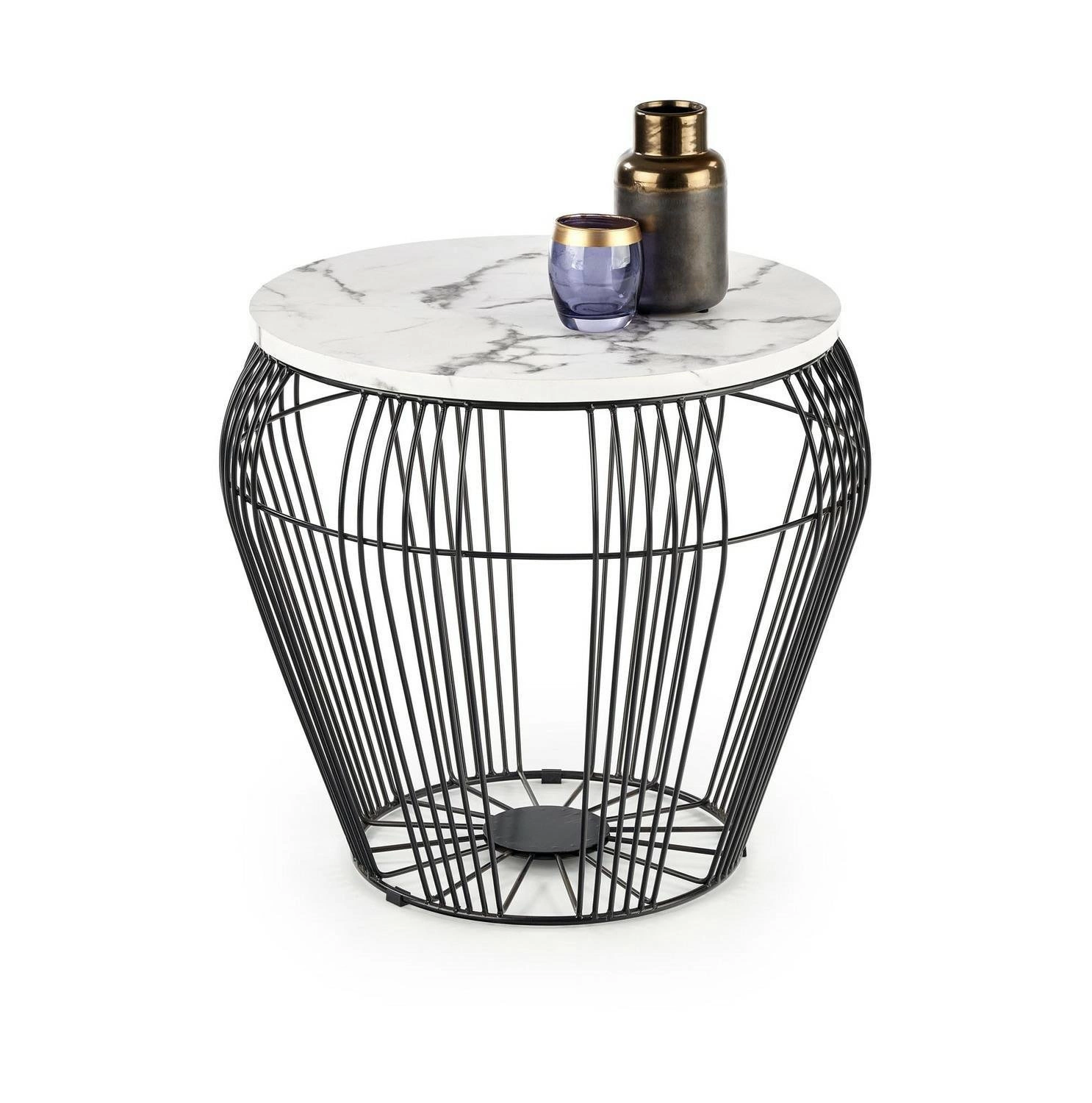 Tento moderní kávový stolek byl navržen pro milovníky minimalistických, ale efektních řešení. Kulatá deska v trendy provedení bílého mramoru dodá interiéru dotek luxusu a současně se velmi snadno udržuje – stačí jednoduše otřít povrch, aby stolek vypadal vždy perfektně. Černá kovová konstrukce přidává stolku na vzdušnosti a podtrhuje jeho industriální charakter, což je ideální pro aktuální loftové trendy.Funkčnost a styl v jednom kuse nábytku