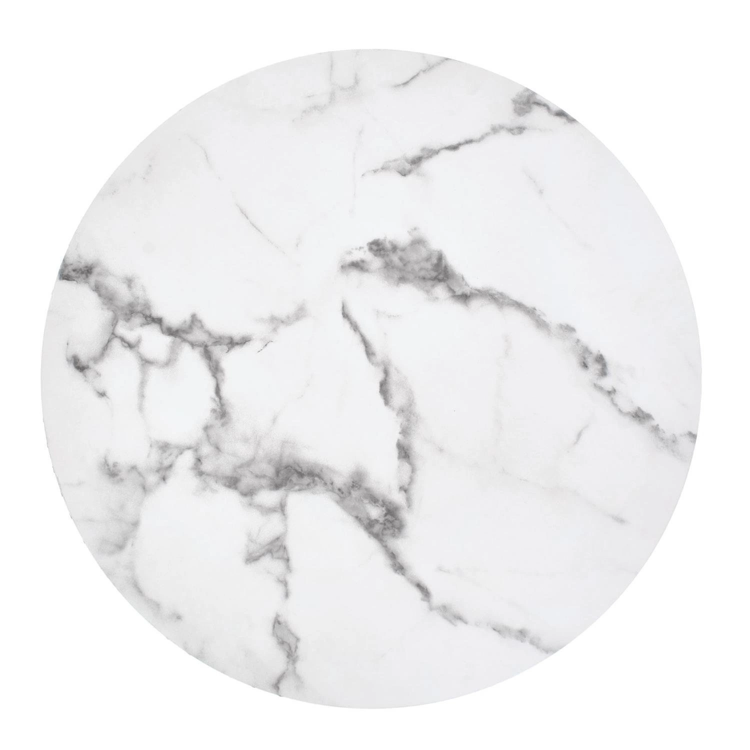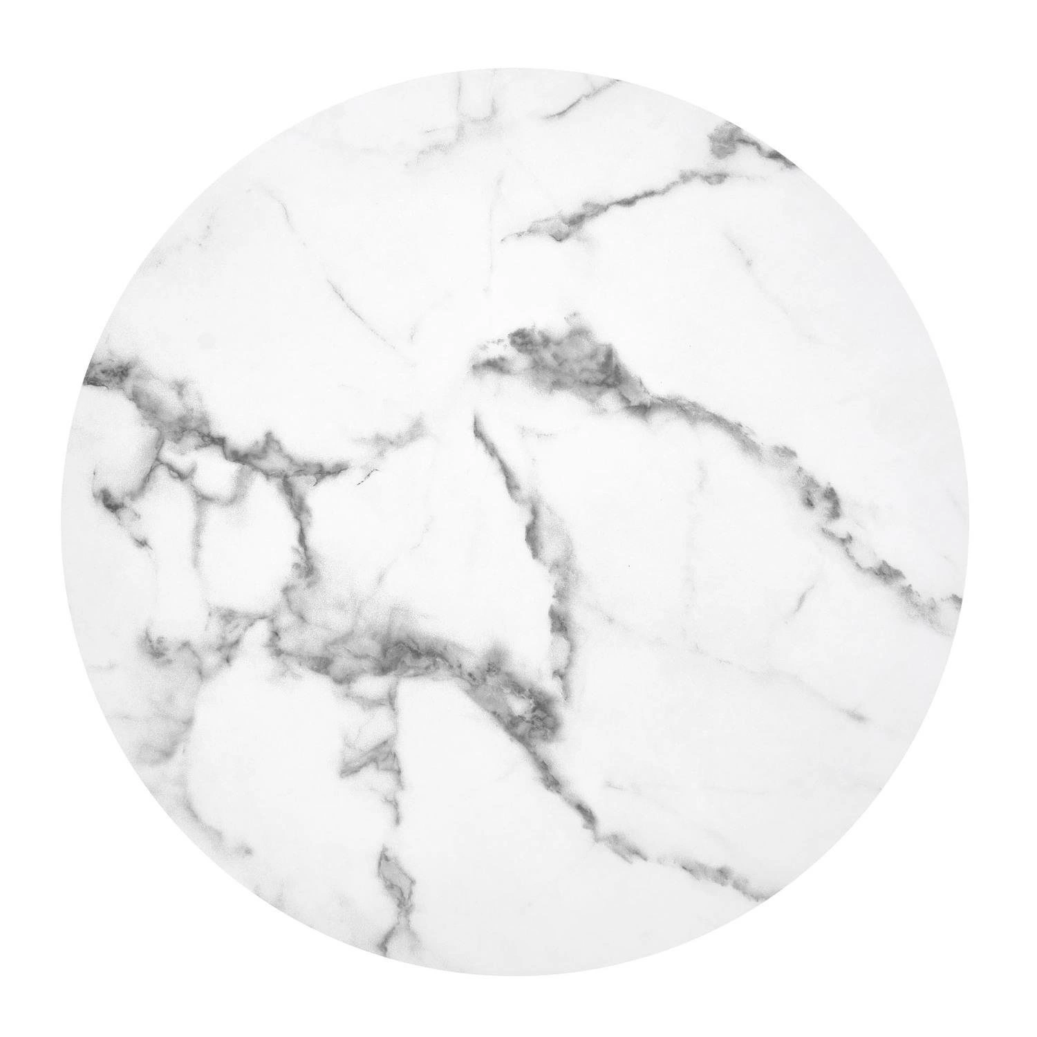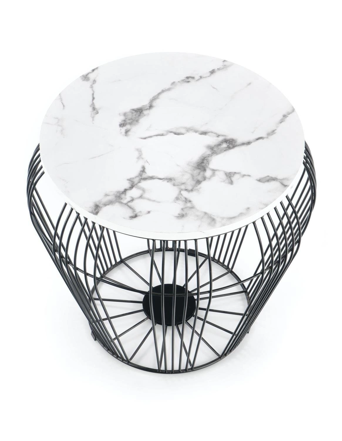 Kávový stolek Arkada kulatý bílý mramor Intesi je spojením praktičnosti a moderního stylu. Kulatá deska o průměru 56 cm s povrchem imitujícím bílý mramor a pevná černá kovová podnož tvoří jedinečný tandem, který se skvěle hodí jako stolek do obýváku i jako stylový odkládací stolek. Výška 52 cm zajišťuje pohodlné používání nábytku při každodenním odpočinku nebo setkáních s rodinou a přáteli.Objevte moderní kávový stolek Arkada zblízka