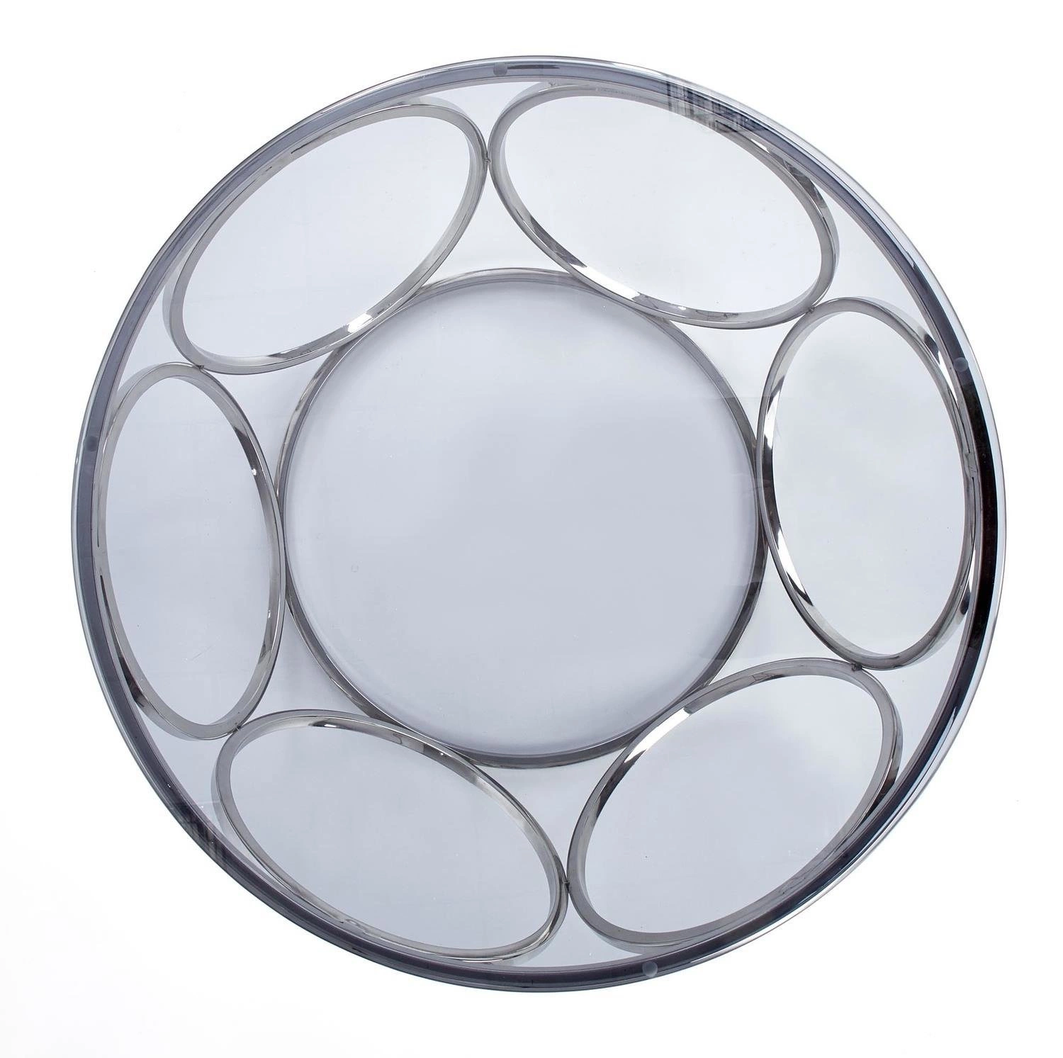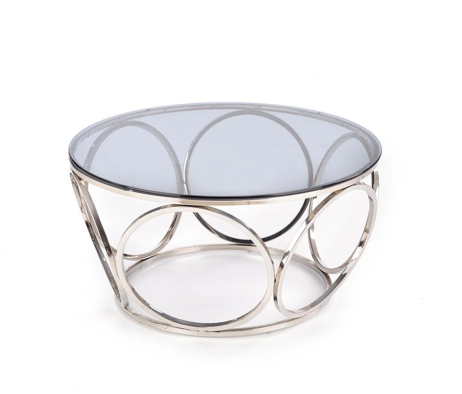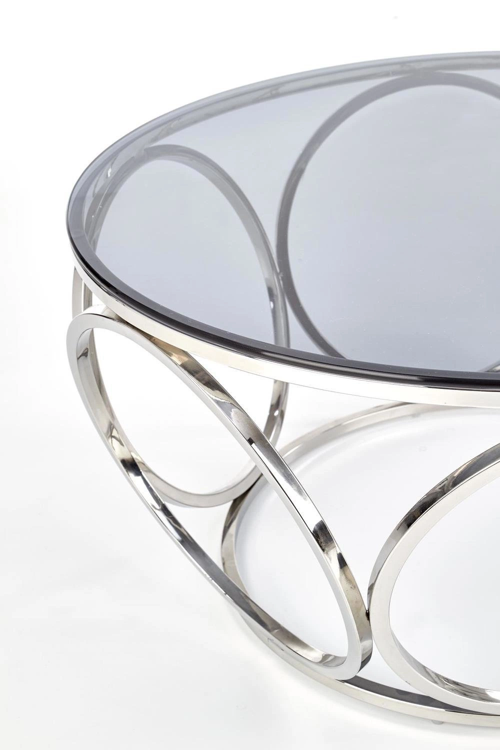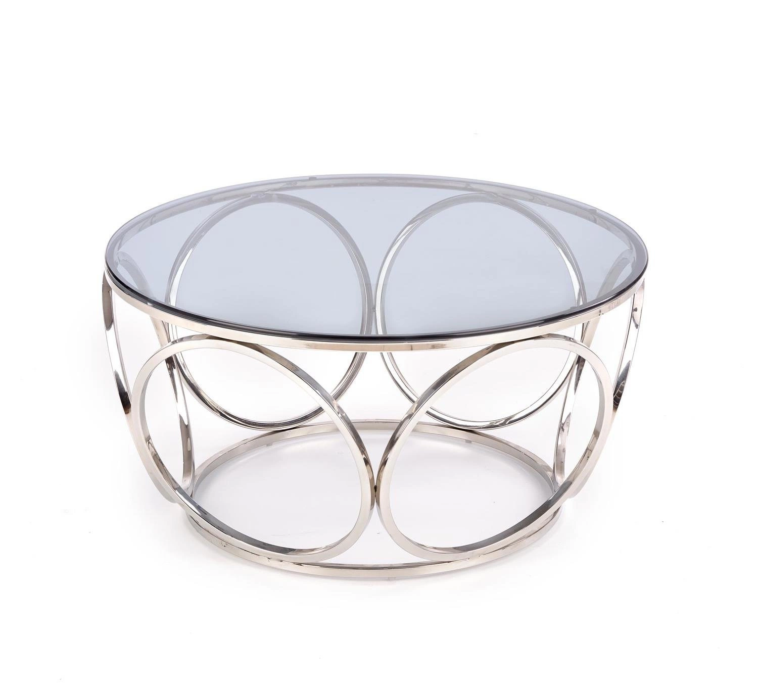 Kulatý konferenční stolek skleněný Deyn 80 cm stříbrný moderní do obýváku Intesi – styl a funkčnost v jednom