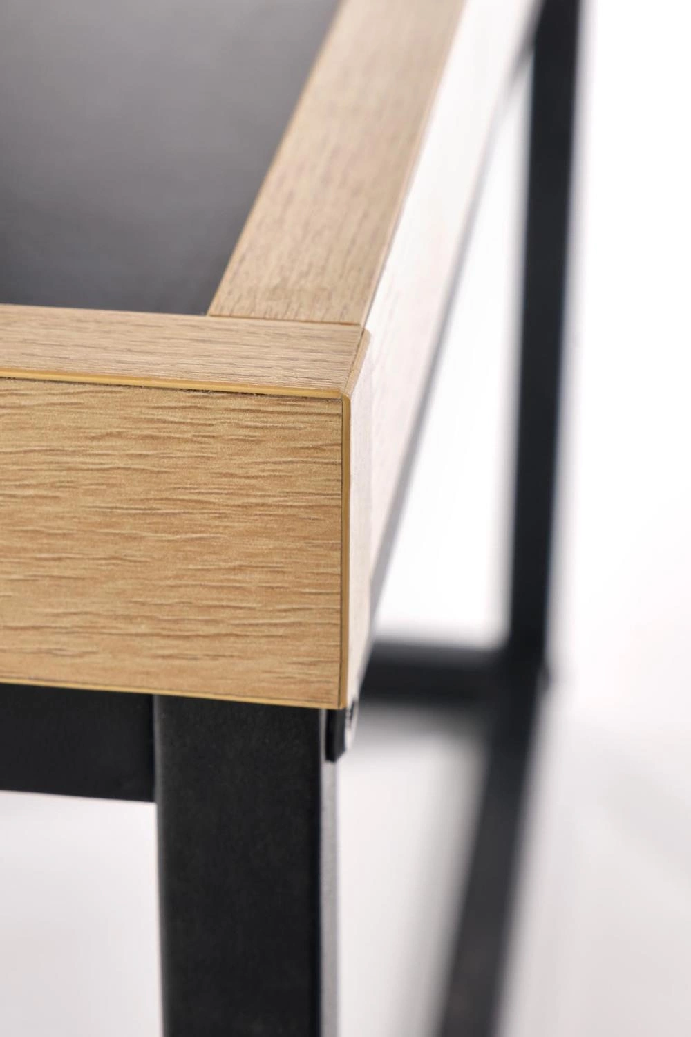 Konferenční stolek Espada obdélníkový od značky Intesi je stylovým řešením, které spojuje moderní estetiku s praktickou funkčností. Vyrobený z odolné nábytkové desky a pevné oceli, s rozměry 100×60×39 cm, skvěle poslouží jako konferenční stolek do obývacího pokoje, ložnice nebo domácí kanceláře. Kombinace černé barvy a přírodního odstínu dřeva vnese do interiéru nadčasový industriální charakter, zatímco obdélníkový tvar desky stolu zajistí pohodlné používání každý den.Objevte moderní konferenční stolek Espada zblízka