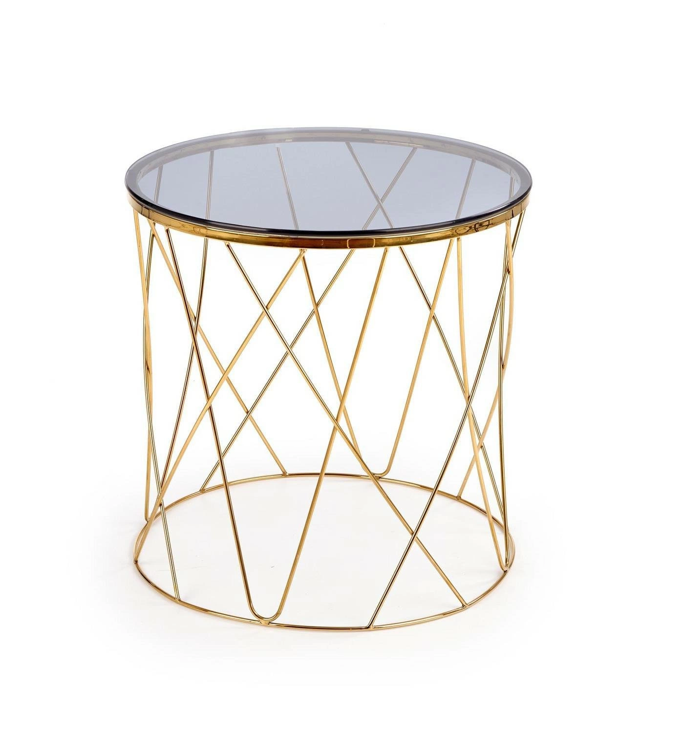 Rozměry 55/55 cm dodávají stolku intimní a přívětivý charakter, který vybízí k usednutí a odpočinku. Kouřové sklo je tónované do jemného odstínu šedé, díky čemuž jeho lesklý lesk krásně odráží světlo, zatímcozlatá podnož dokonale kontrastuje s horní deskou .