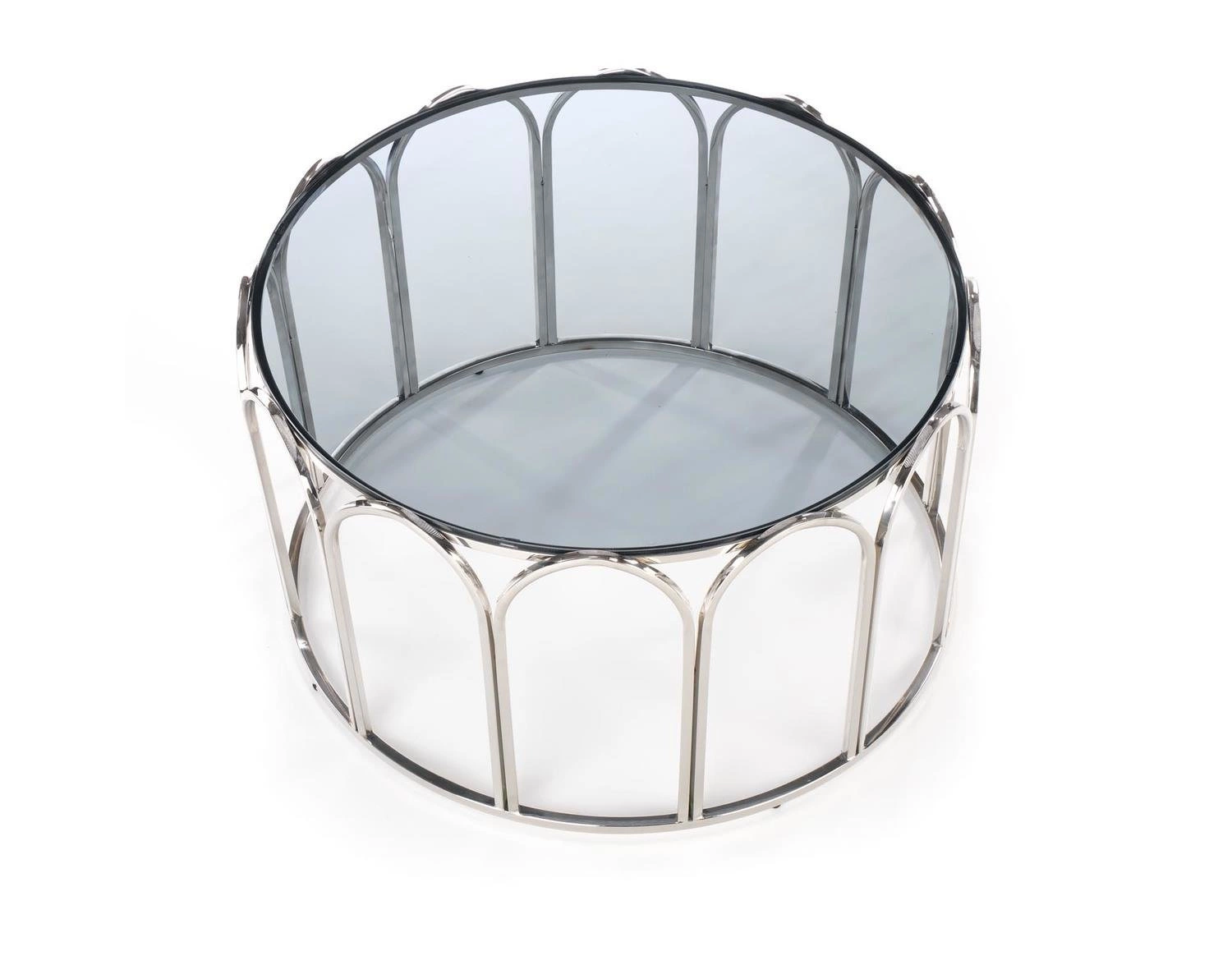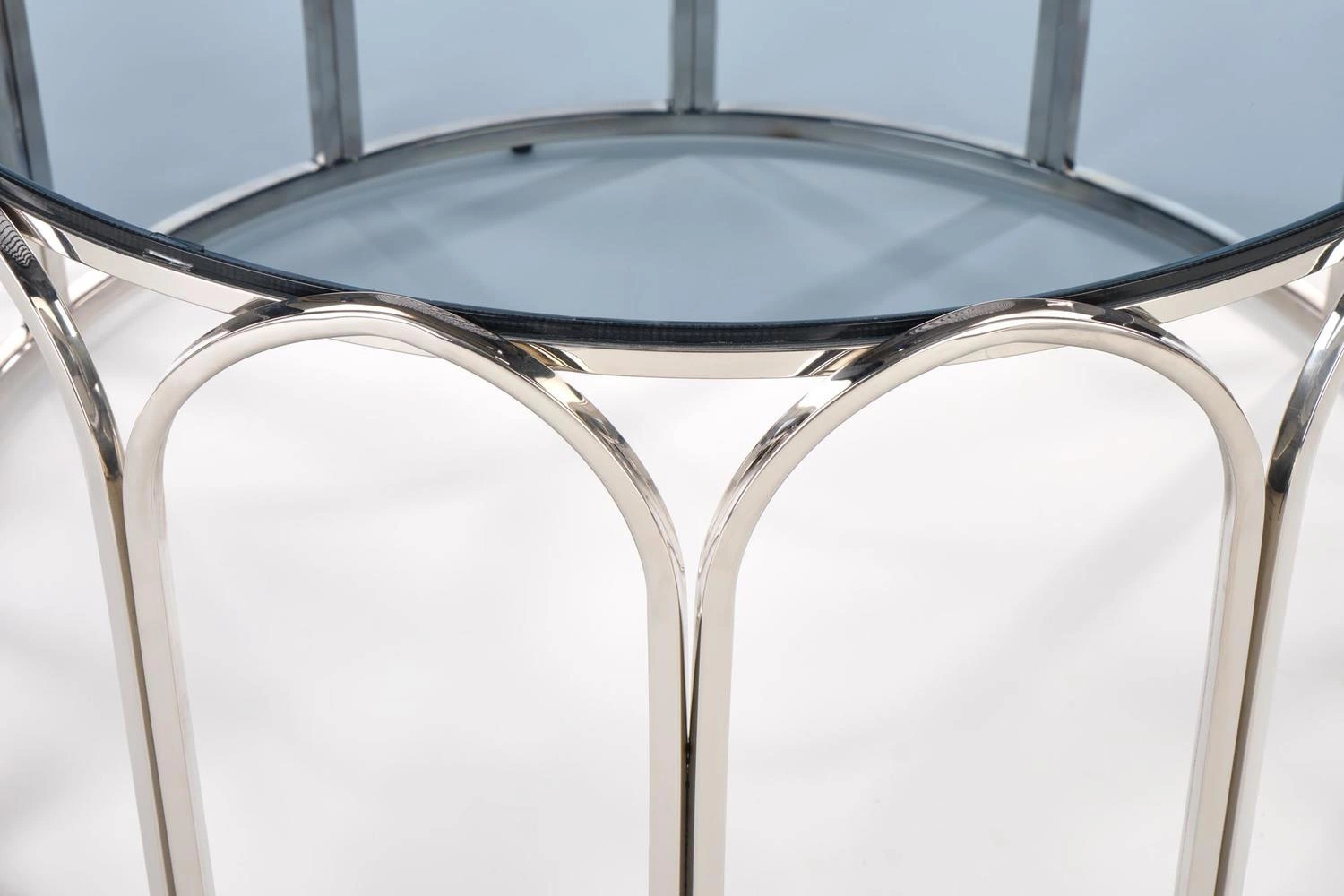 Deska stolu kruhového tvaru je vyrobena z průhledného skla, které mu dodává lehkost a interiér díky němu působí prostorněji. Kouřová barva desky navíc dodává stolku jemnost a tajemnost a vytváří jedinečný vizuální efekt. Konferenční stolek Viola zaujme nejen svým vzhledem, ale nabízí také mnoho praktických výhod. Jeho robustní kovový rám zajišťuje stabilitu a pevnost, takže na něj snadno umístíte šálek kávy, knihu nebo dekorativní předměty.