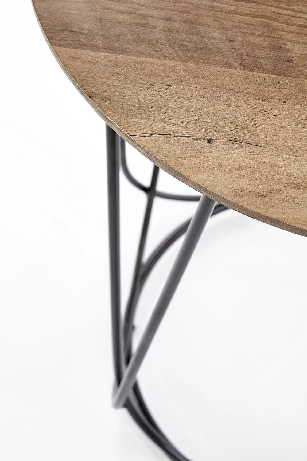 Kulatý konferenční stolek Jenna S je kombinací jednoduchosti a promyšleného designu. Přirozená barva desky připomíná teplý ořech, zatímco černá kovová podnož dodává celku moderní, industriální charakter. Díky kompaktním rozměrům je stolek ideální jako malý konferenční stolek do menšího obývacího pokoje, odkládací stolek k pohovce nebo praktický noční stolek v ložnici.Funkčnost a univerzální design