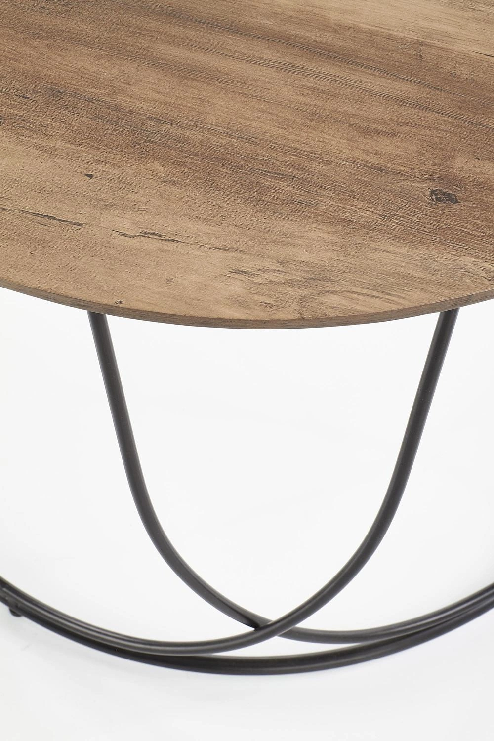 Konferenční stolek Jenna kulatý 60 cm moderní ořech s černou kovovou nohou do obýváku