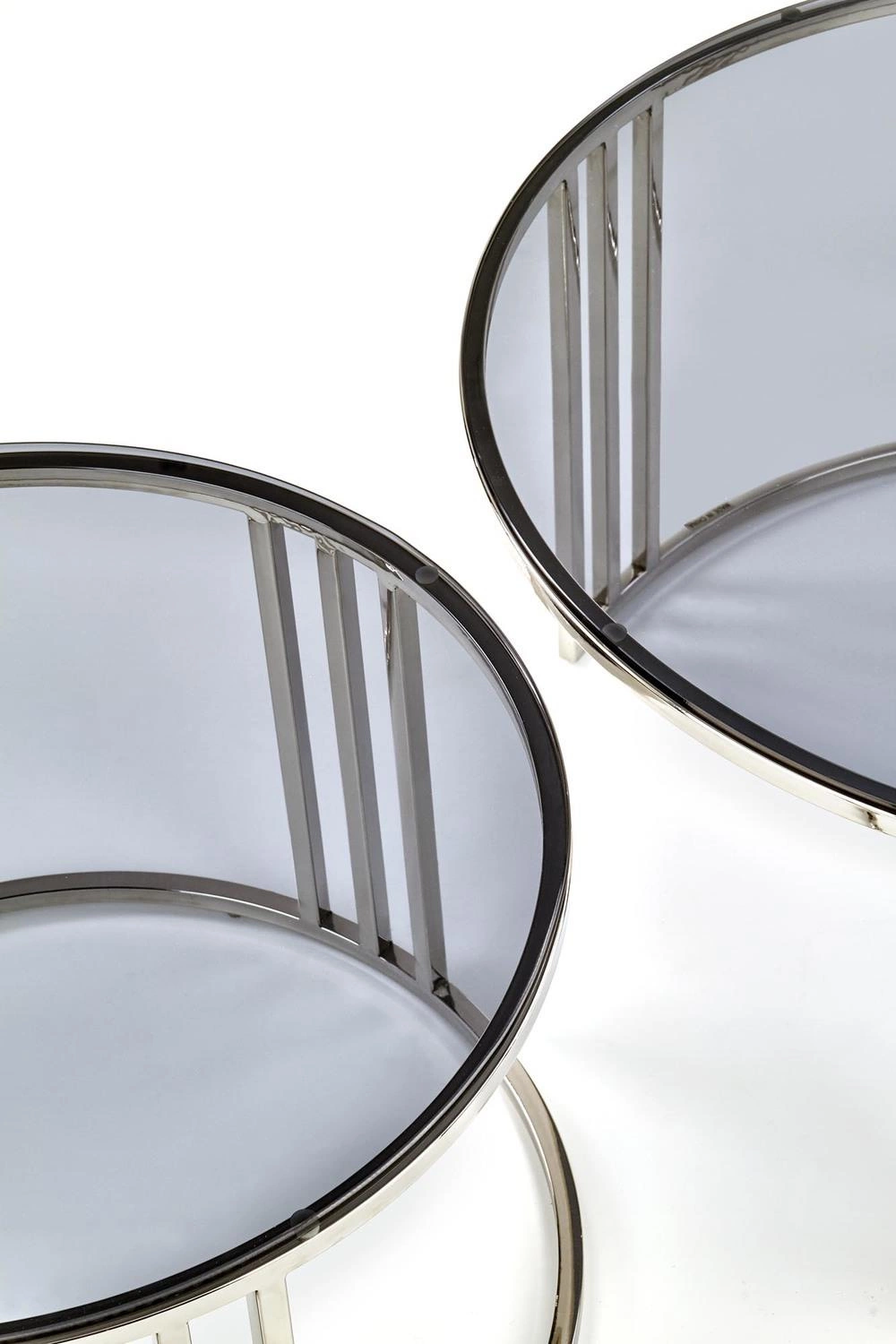 Sada 2 kulatých konferenčních stolků Yasmine skleněných – moderní glamour do obýváku Intesi
