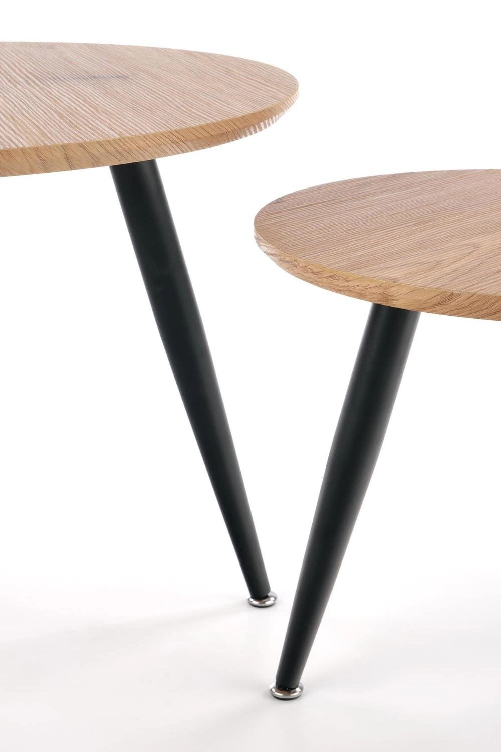 Sada 2 kulatých konferenčních stolků Hawardia dub a černý loftový do obýváku 2v1 Intesi – funkčnost a styl v jednom