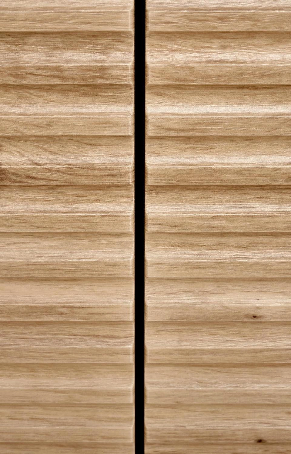 Výrazné spojení černých prvků s přírodním dekorem dub artisan zaručuje, že komoda Nihala perfektně zapadne do moderních i loftových interiérů. Horizontálně frézované čelní plochy dávají komodě jedinečný, designový vzhled a matný povrch přidává jemnou eleganci. Tento model je skvělou volbou jako komoda do obývacího pokoje, ale stejně dobře poslouží i jako praktický nábytek do ložnice nebo předsíně, kde se ideálně hodí do industriálně laděných prostor.