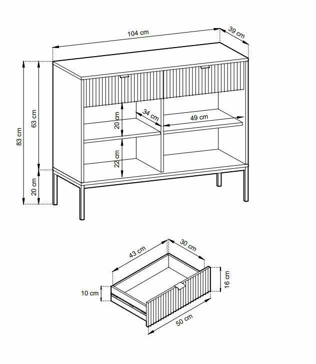 - 2 prostorné zásuvky a 2 skříňky – usnadní ukládání a udržení pořádku v každém interiéru.