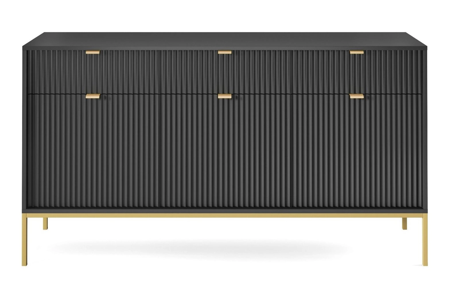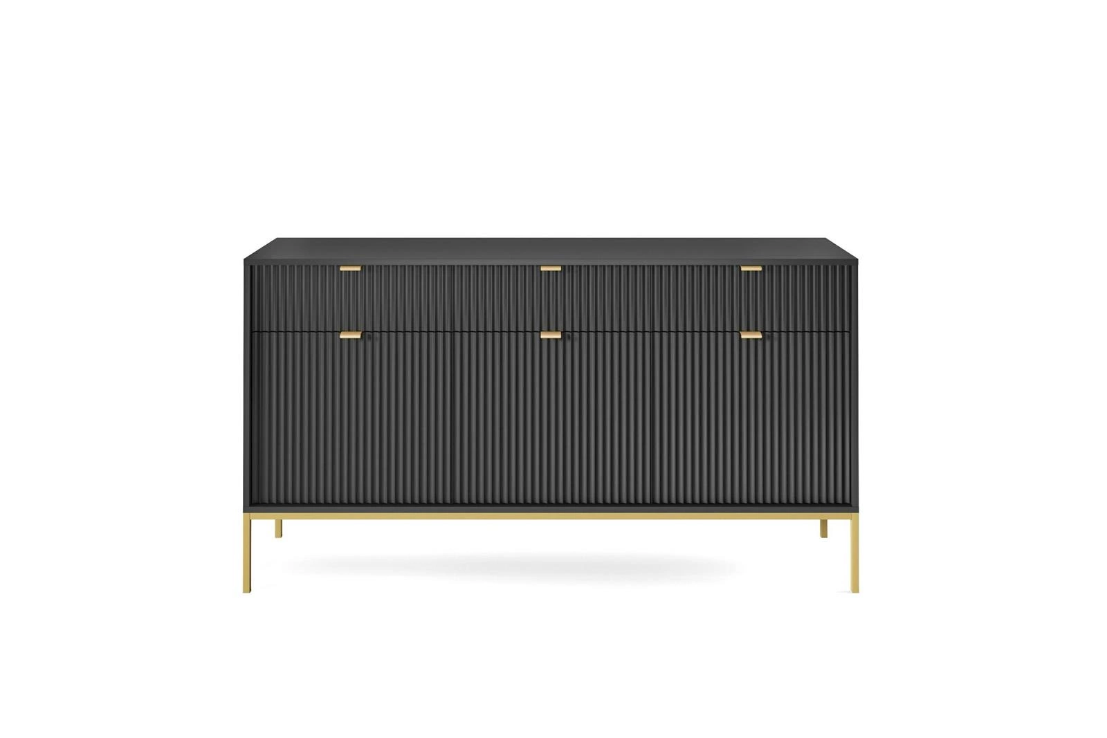 Černá rýhovaná komoda se zásuvkami na zlatých nohách 154 cm do moderního obýváku Intesi