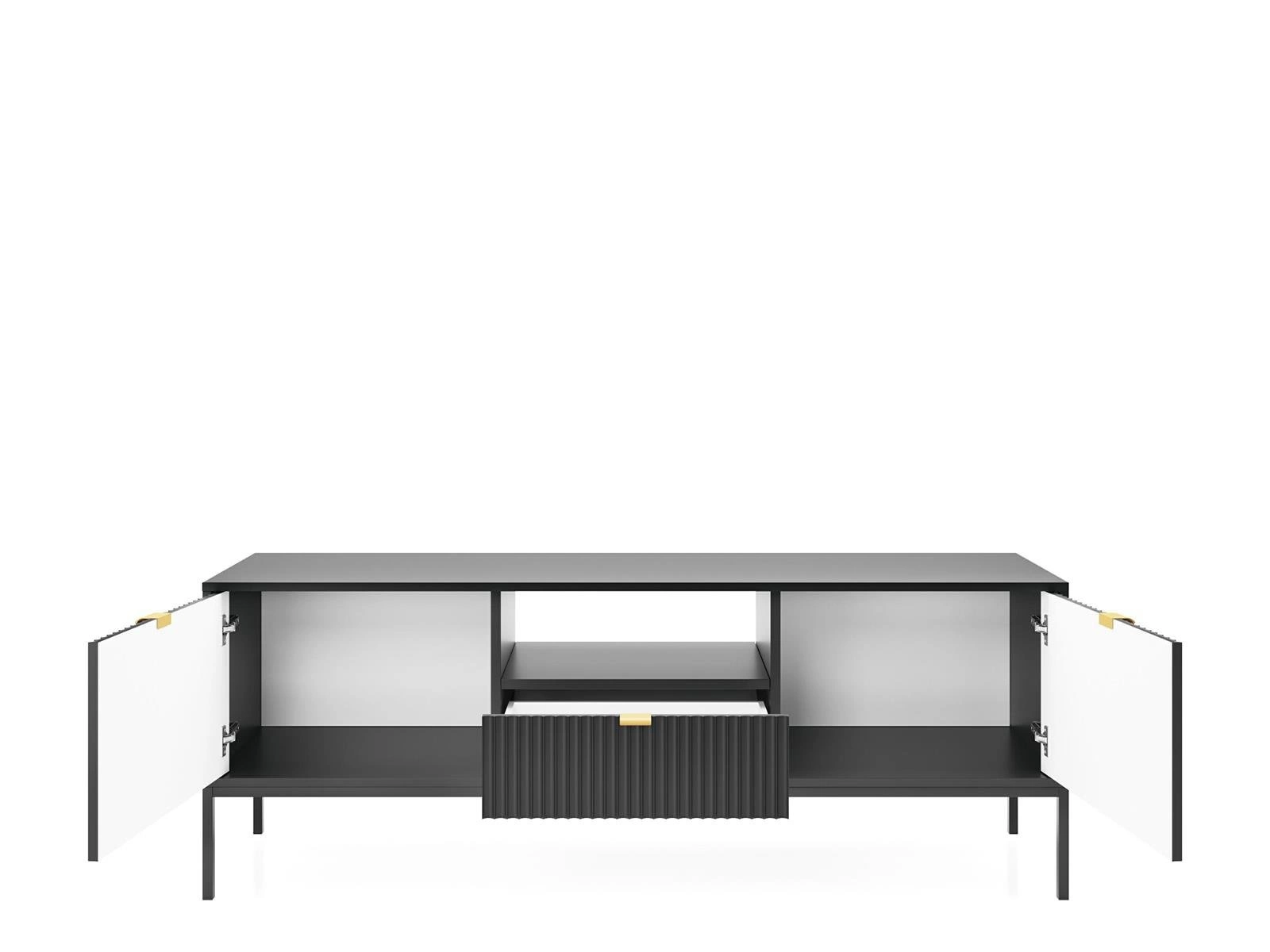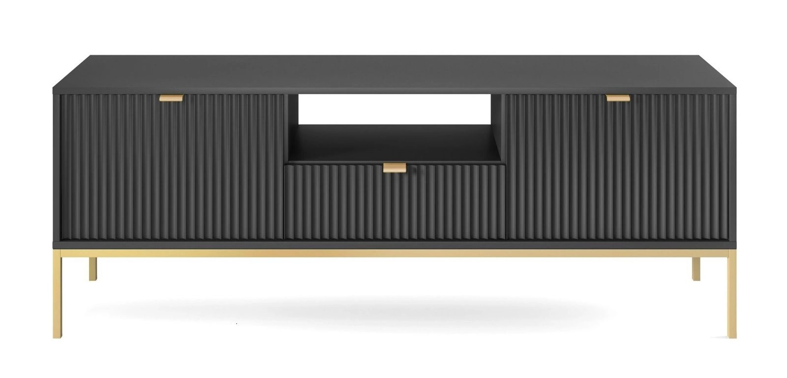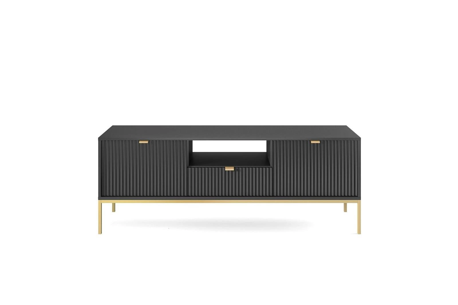 TV stolek Delicious černý s drážkováním a zásuvkou na vysokých zlatých nohách 154 cm do obýváku