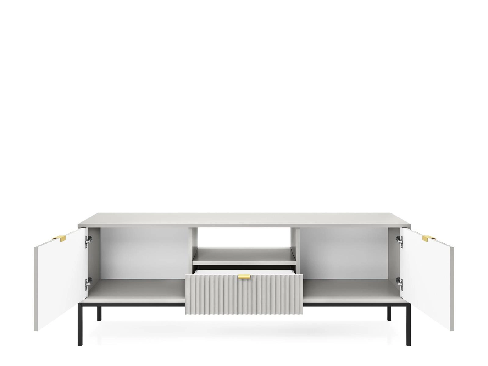 RTV skříňka Delicious šedá frézovaná 154 cm na zlatých nohách od značky Intesi je nábytek, který spojuje moderní design s praktičností a dlouhou životností. Pokud hledáte TV stolek, který elegantně doplní váš obývák a zároveň usnadní každodenní fungování, tento model splní vaše očekávání. Vsaďte na styl a pohodlí – vyberte si RTV skříňku, která promění atmosféru vašeho interiéru.