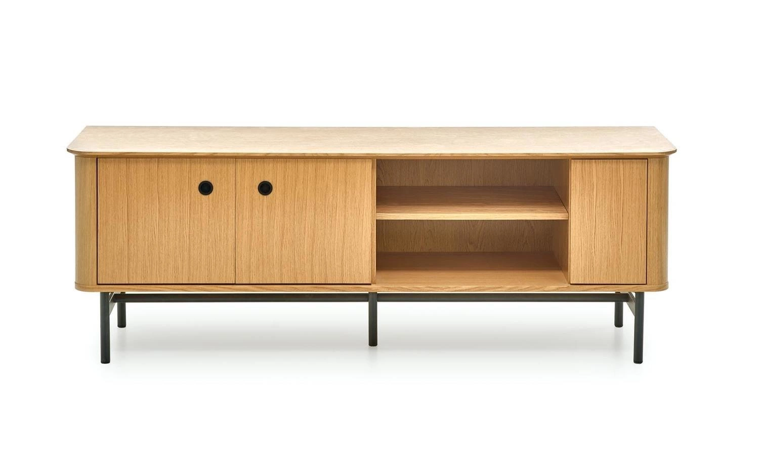 TV skříňka Zefir nabízí nejen elegantní design, ale i pohodlí při každodenním používání. Pět vysokých nohou zajišťuje stabilitu a snadný přístup k podlaze – robotický vysavač bez problémů zajede pod nábytek a usnadní úklid. Promyšlené vnitřní uspořádání zahrnuje pět polic a dvě uzavíratelné skříňky, díky čemuž snadno uložíte elektroniku, sbírku filmů i TV příslušenství.