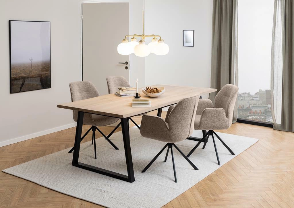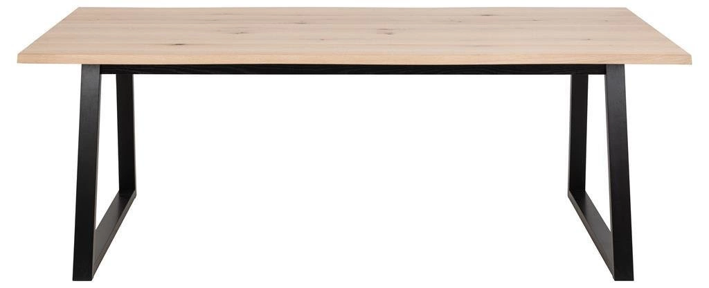Stwórz prawdziwie zachęcającą atmosferę w swojej jadalni dzięki stołowi Malika! Wspaniały mebel został starannie zaprojektowany, aby poprawić estetykę każdego pomieszczenia - łączy w sobie elementy skandynawskie i industrialne, zapewniając przyciągający wzrok wygląd, który pokochasz Ty i Twoi goście. Blat wykonany jest z forniru z dzikiego dębu z białym pigmentem i olejowanym wykończeniem - nadając mu naturalną, wyrafinowaną teksturę, która będzie pasować do każdego wystroju. Dodatkową zaletą tego stołu jest to, że może on pomieścić 8 osób. Podstawę stanowią lakierowane nogi z drewna brzozowego w całości pokryte fornirem z czarnego dębu, bezpopr.ednio kontrastujące z delikatną powierzchnią blatu, nadając mu odrobinę śmiałości. Doświadcz urzekającej atmosfery kolacji w domu dzięki wyjątkowemu stołowi Malika!
