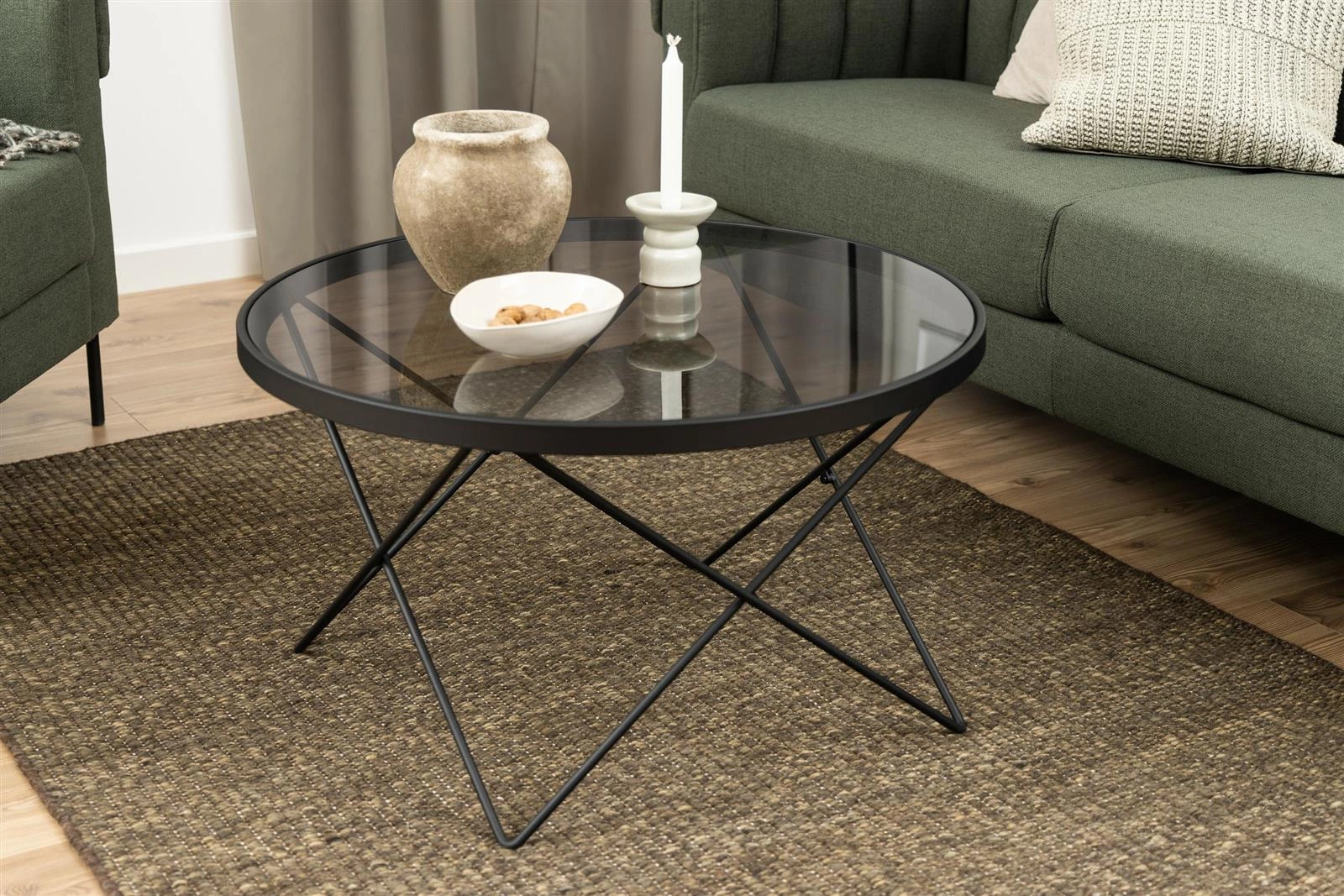 Kulatý skleněný konferenční stolek Cuxton 80 cm černý kouřový – moderní styl do obývacího pokoje od Actona