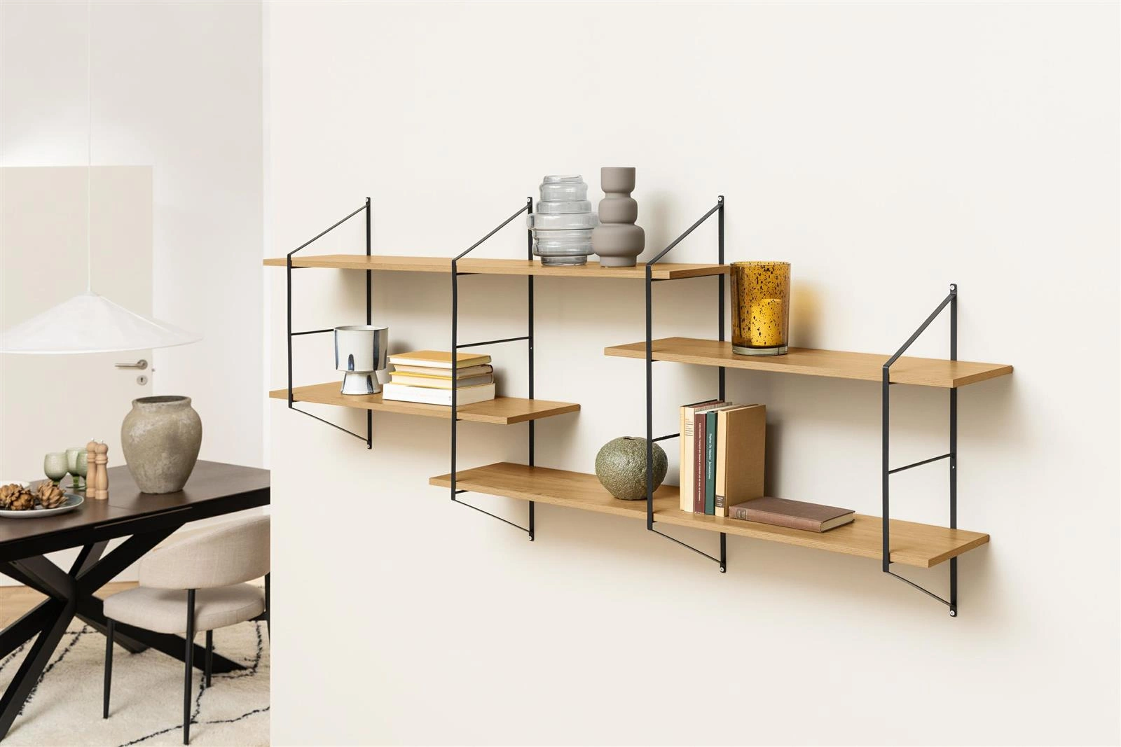 Nástěnná police na knihy Belfast 2 od značky Actona je industriální police s působivou šířkou 191 cm, vyrobená v kombinaci černého matného kovu a desky v přírodním odstínu dubu. Se čtyřmi prostornými úrovněmi je tato závěsná police ideálním řešením pro ukládání knih, dekorací i rostlin a přinese do vašeho obývacího pokoje nebo ložnice jedinečnou atmosféru loftového interiéru.