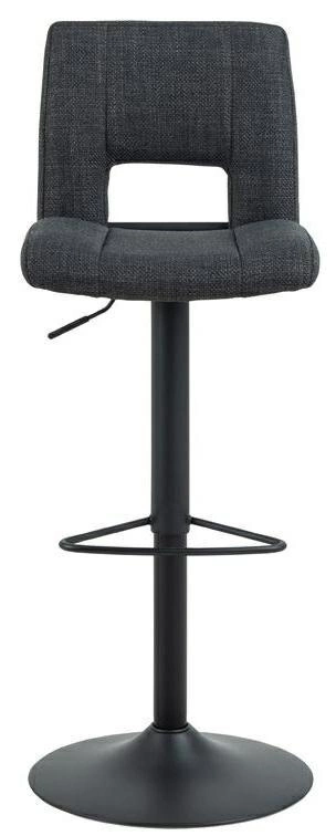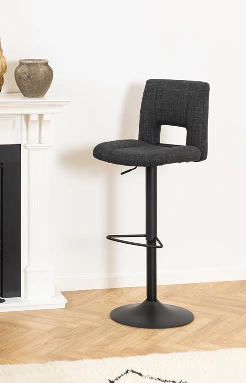 Hoker Sylvia od značky Actona je moderní, čalouněná barová židle s opěrkou, vyrobená z odolné látky v tmavě šedém odstínu a černého kovu. Tento model spojuje pohodlné sezení, nastavitelnou výšku (od 62 do 83 cm) a otočnou funkci, díky čemuž je ideální volbou k kuchyňskému ostrůvku nebo domácímu baru. Široké sedadlo (41,5 cm) a hluboké opěradlo zajišťují komfort při každodenním stolování i setkáních s rodinou a přáteli.