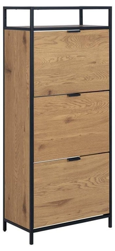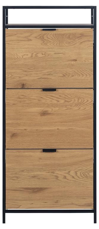 Vysoká botníková skříňka Seaford od značky Actona je propojením rustikálního stylu a praktičnosti, navržená pro estetické a funkční uložení obuvi v předsíni. Nábytek o výšce 129 cm a šířce 56 cm nabízí tři prostorné zásuvky a dodatečnou polici, díky kterým snadno uspořádáte několik párů bot. Pevná konstrukce z přírodně zbarvené MDF a černé kovové základny skvěle ladí s útulnými domácími interiéry inspirovanými dubem divokým.