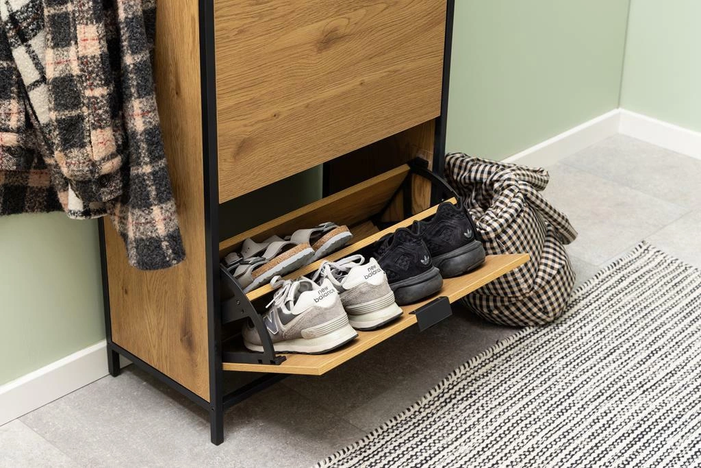 - Tři prostorné zásuvky – pohodlně uložíte sportovní i elegantní obuv a udržíte pořádek v předsíni