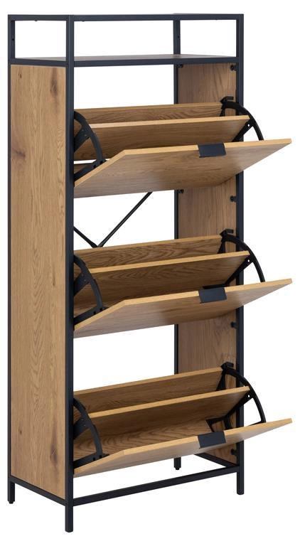 Model Seaford není jen stylový, ale také velmi praktický regál na obuv. Tři hluboké zásuvky umožňují rychlý přístup k každodenně nošeným botám, zatímco přídavná police je ideální pro uložení doplňků, jako jsou kartáče nebo čisticí prostředky. Použité materiály zajišťují snadnou údržbu a čistotu, což je v rušné vstupní zóně obzvlášť důležité.