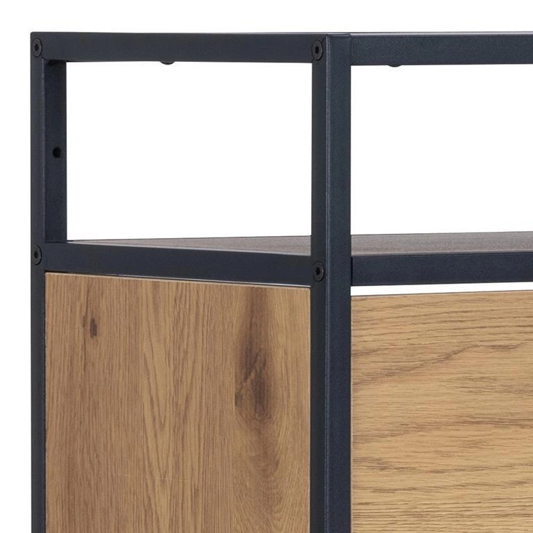 Botník Seaford v odstínu divokého dubu je ideální volbou pro ty, kteří si potrpí na přírodní, hřejivý vzhled interiéru. Hladké, matné čela zásuvek podtrhují eleganci nábytku, zatímco robustní kovová podnož dodává celé skříňce typický rustikální nádech. Díky tomu se botník skvěle hodí jak do klasických, tak do moderních interiérů, vnášejíc do předsíně klid a harmonii.