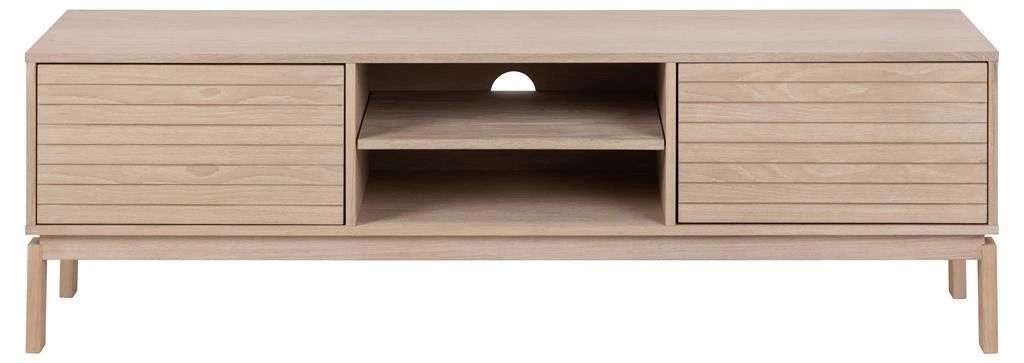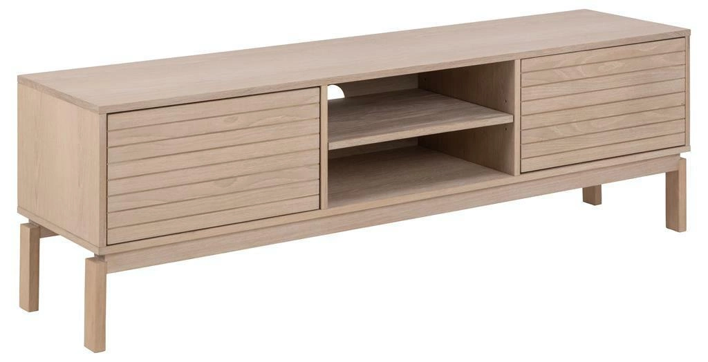 TV skříňka Linley to mebel, który swoim harmonijnym wzornictwem subtelnie wkomponuje się w Twoje wnętrze. Wykonana z dębu olejowanego o pięknym, bielonym odcieniu, ta szafka pod telewizor dodaje elegancji i uroku każdemu pomieszczeniu. Jej lamelowe fronty nadają unikalny wygląd, który zachwyca i wyróżnia się spopr.ód innych mebli.
