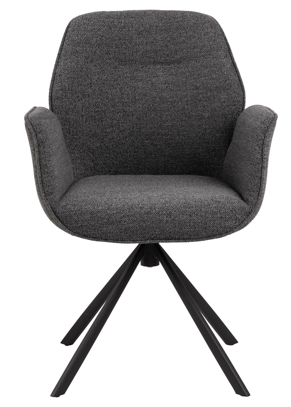 Otočná čalouněná židle s područkami je řešením pro ty, kteří hledají praktický nábytek s promyšleným designem. Černá kovová podnož na čtyřech nohách zajišťuje stabilitu i při maximálním zatížení do 120 kg. Díky výšce sedáku 51 cm se Aura hodí k většině jídelních stolů i pracovních stolů, zatímco hloubka sedu 44 cm nabízí pohodlí i při dlouhodobé práci nebo dlouhých rozhovorech s blízkými.