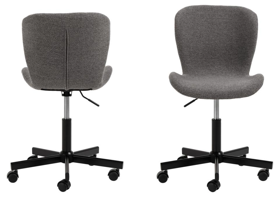 Ergonomická kancelářská židle Batilda-A1 od značky Actona je moderní, antracitově šedá otočná židle s nastavitelnou výškou, navržená pro maximální pohodlí během práce i studia u stolu. Čalounění z měkké bouclé látky nabízí široké sedadlo (48 cm) a ergonomicky tvarované područky. Díky pevné černé základně na kolečkách a možnosti nastavení výšky sedadla (od 44,5 do 51,5 cm) se židle dokonale přizpůsobí individuálním potřebám uživatele – ať už v domácí pracovně, nebo v moderní kanceláři.