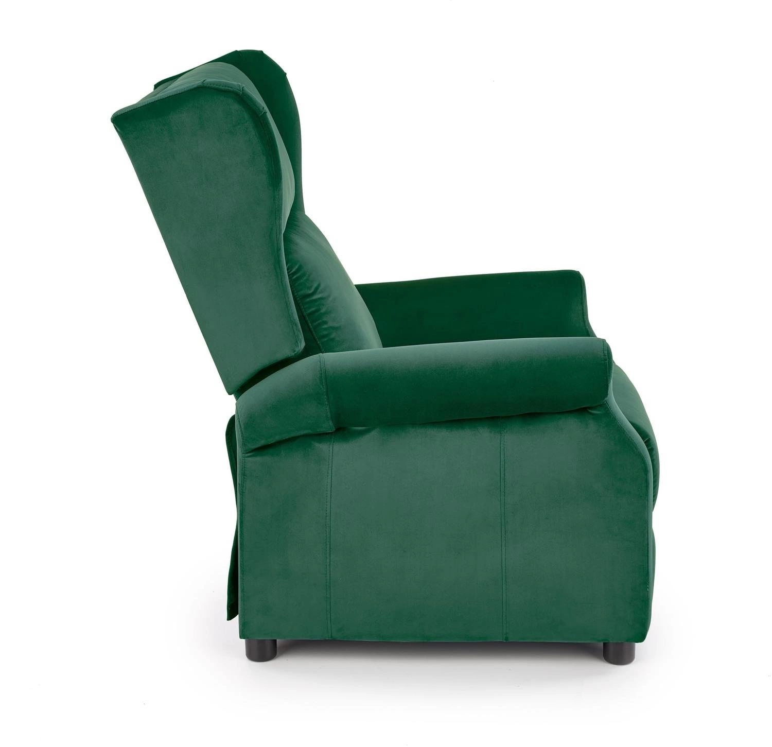 Rozkládací křeslo do obývacího pokoje Nagu od značky Intesi je ideální volbou pro ty, kteří si potrpí na luxus i pohodlí. Potah z měkkého sametového materiálu v hluboké tmavě zelené barvě a pevná černá základna dodávají křeslu elegantní vzhled ve stylu glamour. Díky funkci rozkládání si můžete dopřát maximální relax přímo doma. Šířka 75 cm a hloubka 92 cm zajišťují dostatek prostoru a pohodlí – křeslo se skvěle hodí do obýváku, ložnice nebo domácí pracovny.