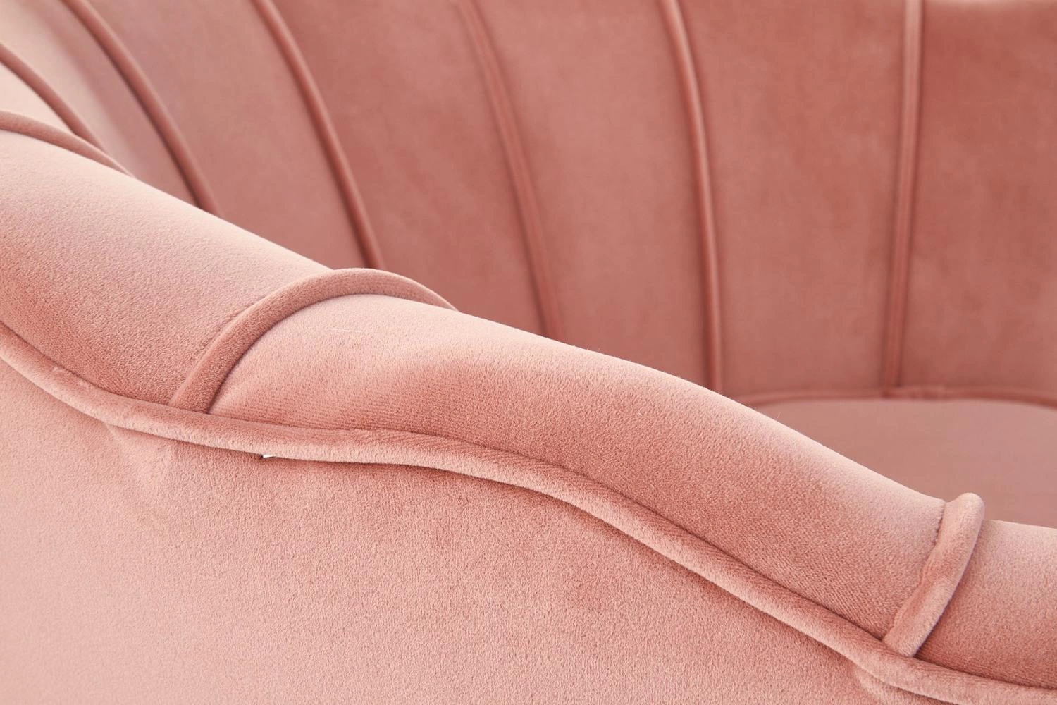 Jedinečný tvar mušle je inspirován interiérovými trendy z luxusních apartmánů. Křeslo Florecja okouzlí nejen dekorativním vzhledem, ale i jemným odstínem růžové, který vnáší do prostoru svěžest a lehkost. Je to ideální křeslo do obývacího pokoje nebo elegantní ložnice, kde poslouží jako pohodlné místo k relaxaci i jako stylový doplněk interiéru.