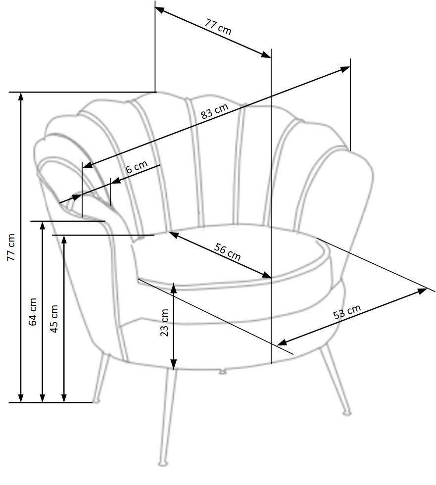 Powitaj fotel muszelkę Florencja w swojej przestrzeni życiowej jako przyciągający wzrok dodatek! Nowoczesny fotel w stylu glamour doda odrobinę luksusu do każdego salonu. Metalowa podstawa w lśniącym, złotym kolorze sprawia, że fotel ten wyróżnia się na tle innych. Jego tapicerka to aksamitna tkanina w pięknym sk.anatowym kolorze, która z pewnością zadowoli każdego, kto ma oko do designu. Co najlepsze, fotel jest idealny do tchnięcia życia w każdy narożnik lub mały obszar dzięki swoim kompaktowym rozmiarom. Z pewnością docenisz wysokość siedziska wynoszącą 45 cm, dzięki której Twoje stopy będą wygodnie podparte podczas relaksu. Jeszcze nigdy nie było tak łatwo ożywić wnętrze: kup fotel Florencja i stwórz wyrafinowaną atmosferę!
