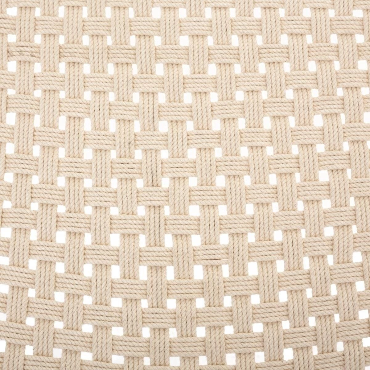 Jedinečná konstrukce je založena na pečlivě zpracované makramě z přírodní bavlny, která křeslu dodává umělecký, pletený charakter. Nejde jen o moderní doplněk – precizní uzly zajišťují vzdušnost a jemnou pružnost sedáku, díky čemuž je každý okamžik odpočinku ještě příjemnější. Kombinace bílé barvy a přírodního dřeva podtrhuje rustikální lehkost a model Raina tak vynikne mezi ostatními křesly do obývacího pokoje nebo na zahradu.