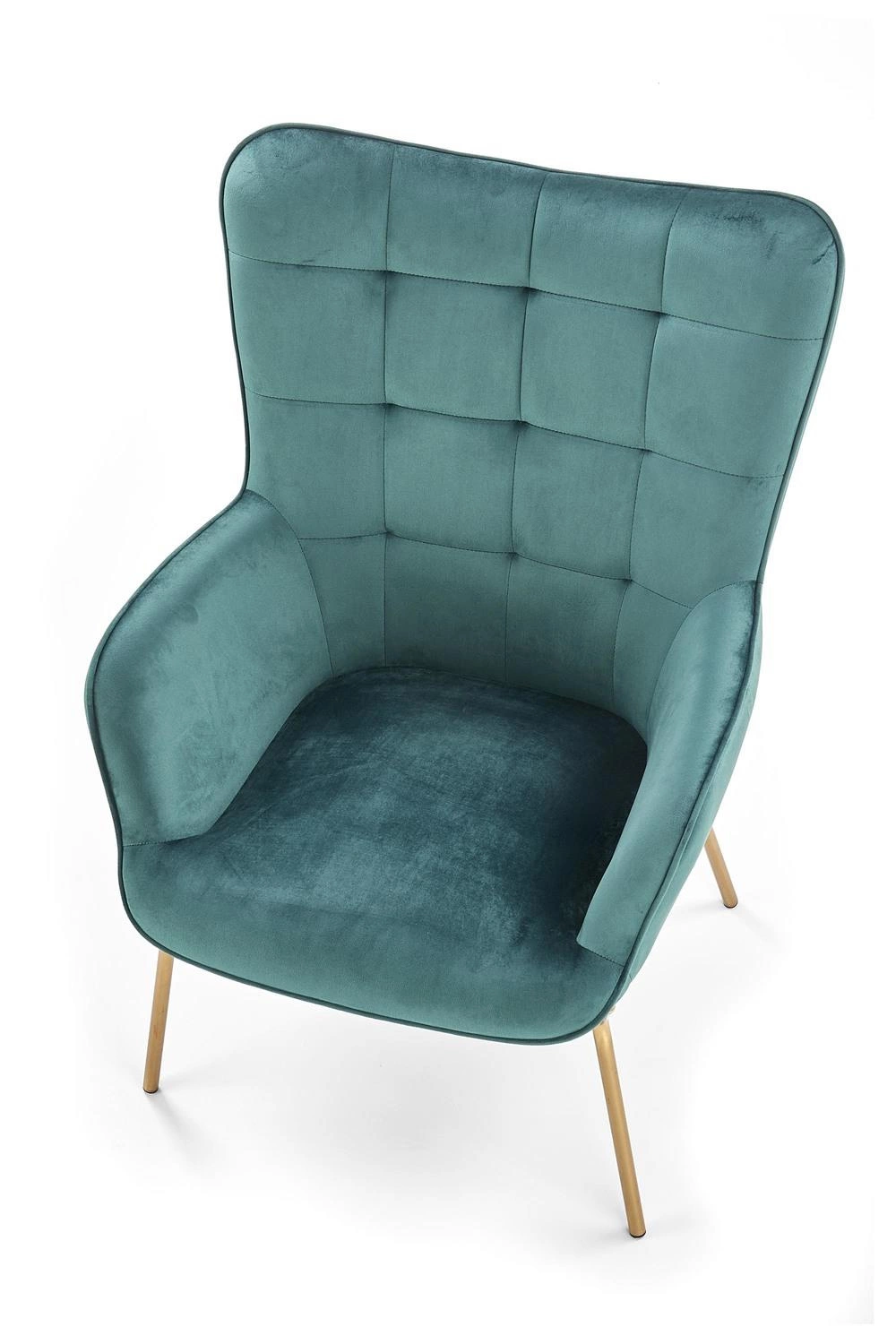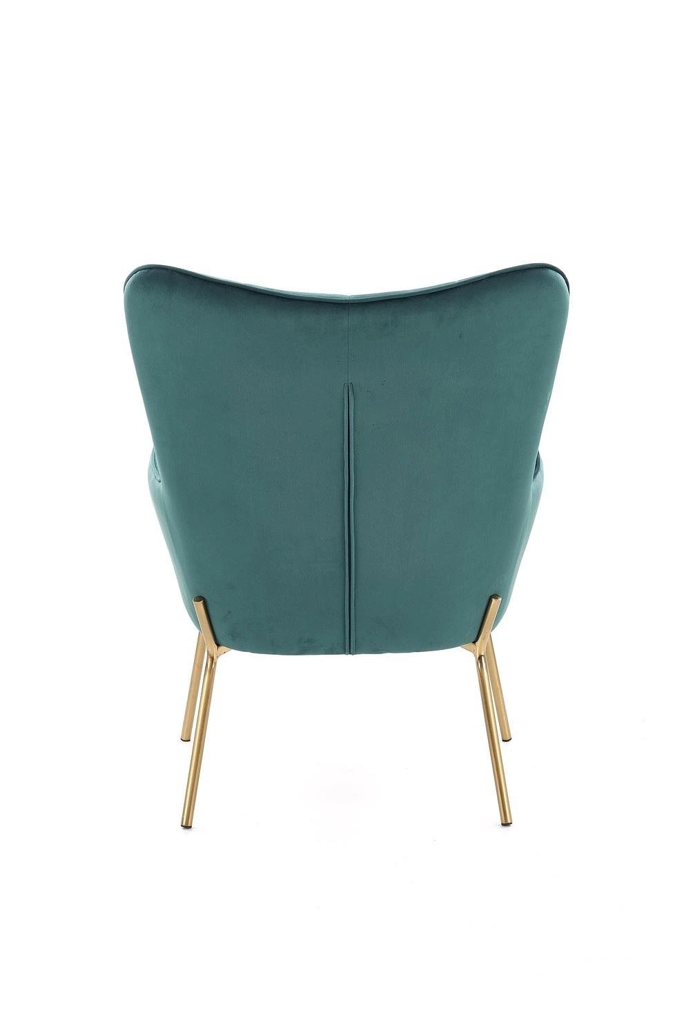 Křeslo ušák Cabres od značky Intesi je skvělou volbou pro milovníky moderního designu a pohodlného odpočinku. Čalouněné měkkou látkou v hluboké, tmavě zelené barvě, postavené na elegantních zlatých nohách, zaujme ergonomicky tvarovaným opěradlem a širokými područkami. Díky promyšleným rozměrům (výška 97 cm, šířka 71 cm, hloubka 79 cm) se perfektně hodí jako křeslo do obývacího pokoje, ložnice nebo domácí kanceláře.