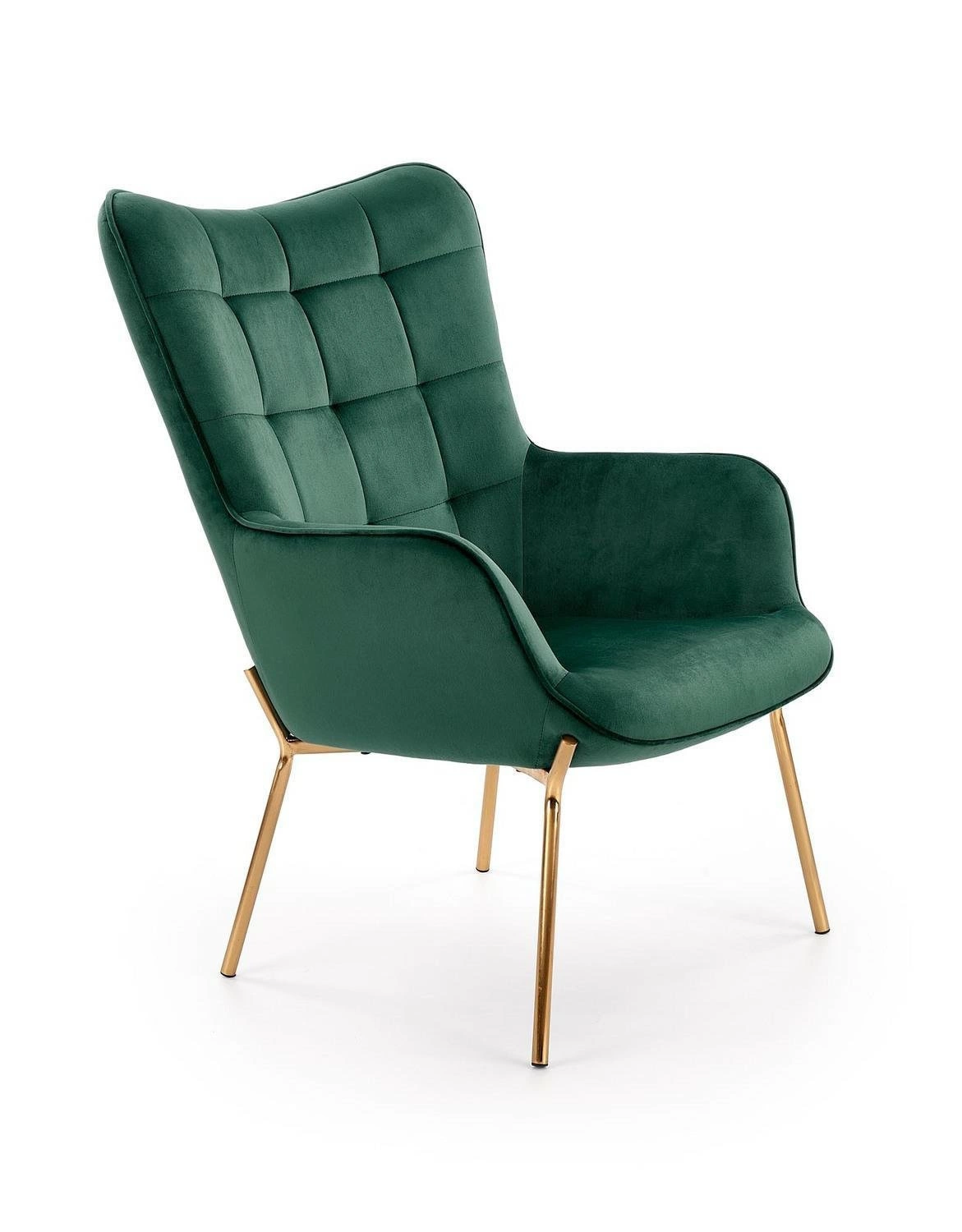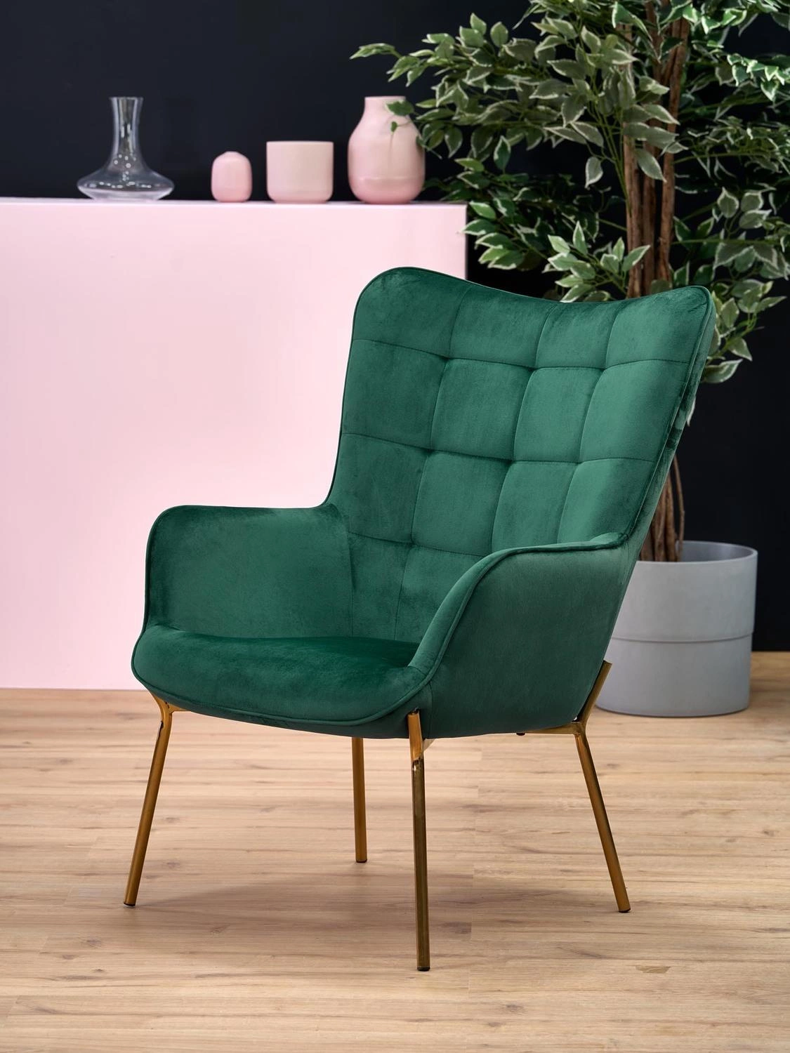 Cabres je křeslo, které přesně odpovídá aktuálním trendům v interiérovém designu. Jeho charakteristický tvar ušáku podtrhuje moderní styl místnosti a zároveň poskytuje pohodlnou oporu pro záda i hlavu. Hluboká zelená čalounění je ideální pro ty, kteří oceňují nadčasovou eleganci a útulnost. Zlaté, štíhlé nohy dodávají celé konstrukci lehkost a zároveň vnášejí do prostoru nádech luxusu – perfektně se hodí jak ke glamour, tak minimalistickému stylu doplňků.