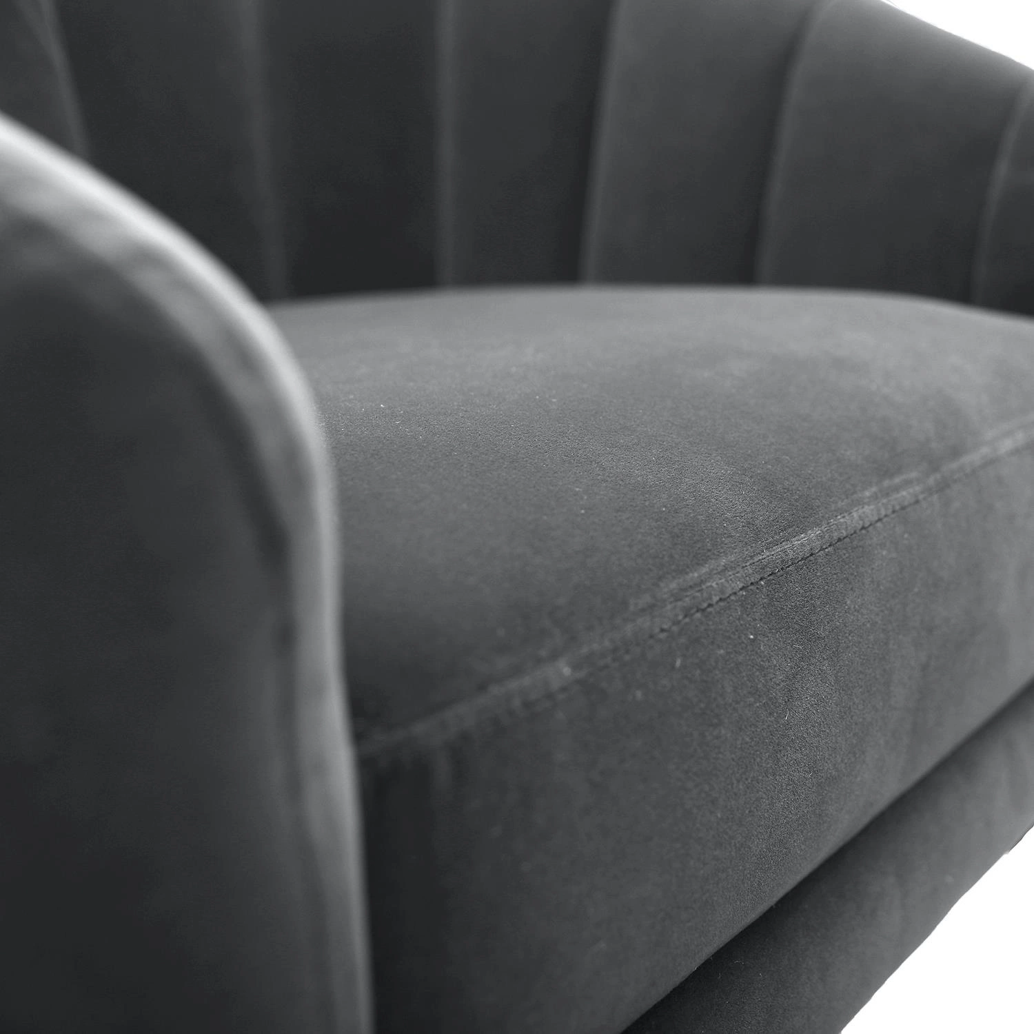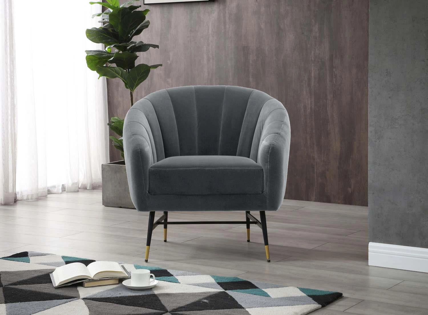 Minimalistický tvar křesla Fluffy se harmonicky hodí do moderních interiérů a snadno jej sladíte s různými styly – od prostorných obývacích pokojů po útulné ložnice. Kombinace elegantní šedé sametové látky s jemným leskem kovu vytváří efektní a univerzální dekorační prvek. Jemně tvarované opěrky a čtyři stabilní nohy zajišťují nejen stabilitu, ale i podtrhují elegantní charakter tohoto nábytku.