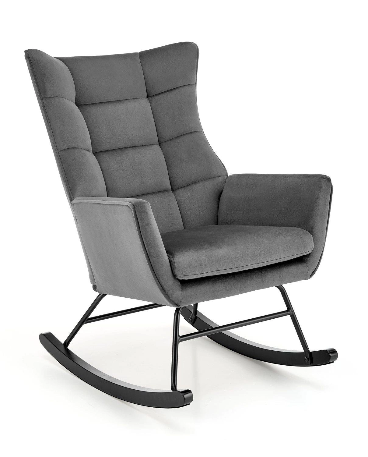 Houpací křeslo Topar značky Intesi je moderní relaxační křeslo, které spojuje eleganci šedého sametu, pohodlí vysokého opěradla a praktické područky. Jeho jemně prošívané detaily a pevná černá základna na lyžinách dokonale zapadají do současných trendů v interiérovém designu. Díky šířce 70 cm a hloubce 90 cm poskytuje křeslo Topar maximální komfort i při dlouhém odpočinku v obývacím pokoji nebo ložnici.