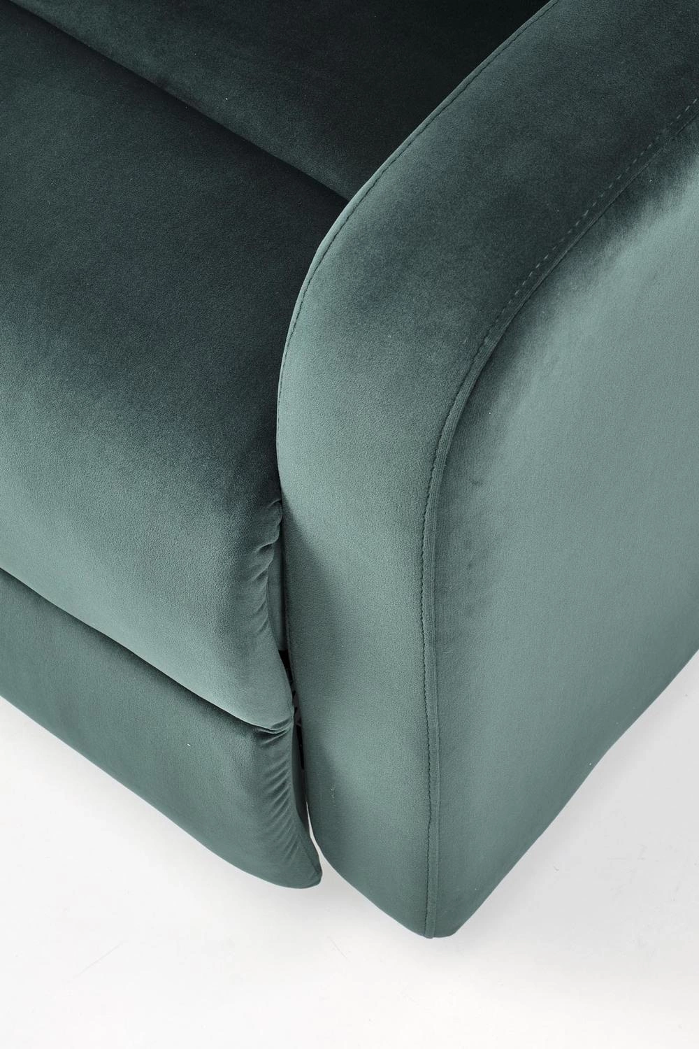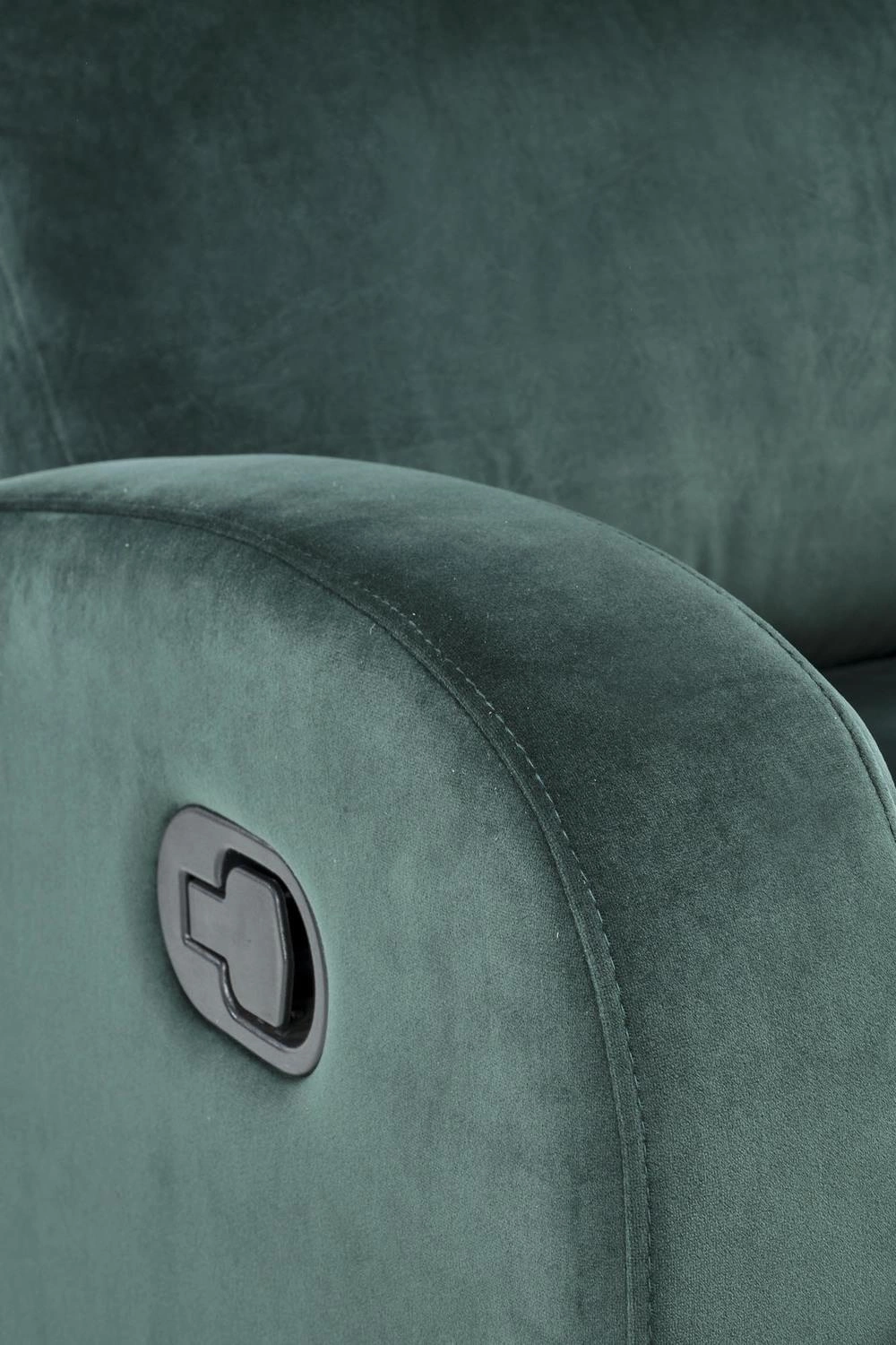 Rozkládací křeslo do obývacího pokoje Veral samet zelený od značky Intesi je spojením moderního stylu a praktičnosti, které promění každodenní odpočinek v opravdové potěšení. Čalounění z měkké, zelené sametové látky, možnost rozložení do polohy vleže a integrovaná funkce houpání dělají z tohoto křesla ideální místo k relaxaci, krátkému spánku nebo čtení knihy. Šířka 75 cm a hloubka 95 cm zajišťují pohodlí i při delším odpočinku a maximální nosnost do 120 kg podtrhuje pevné zpracování konstrukce.